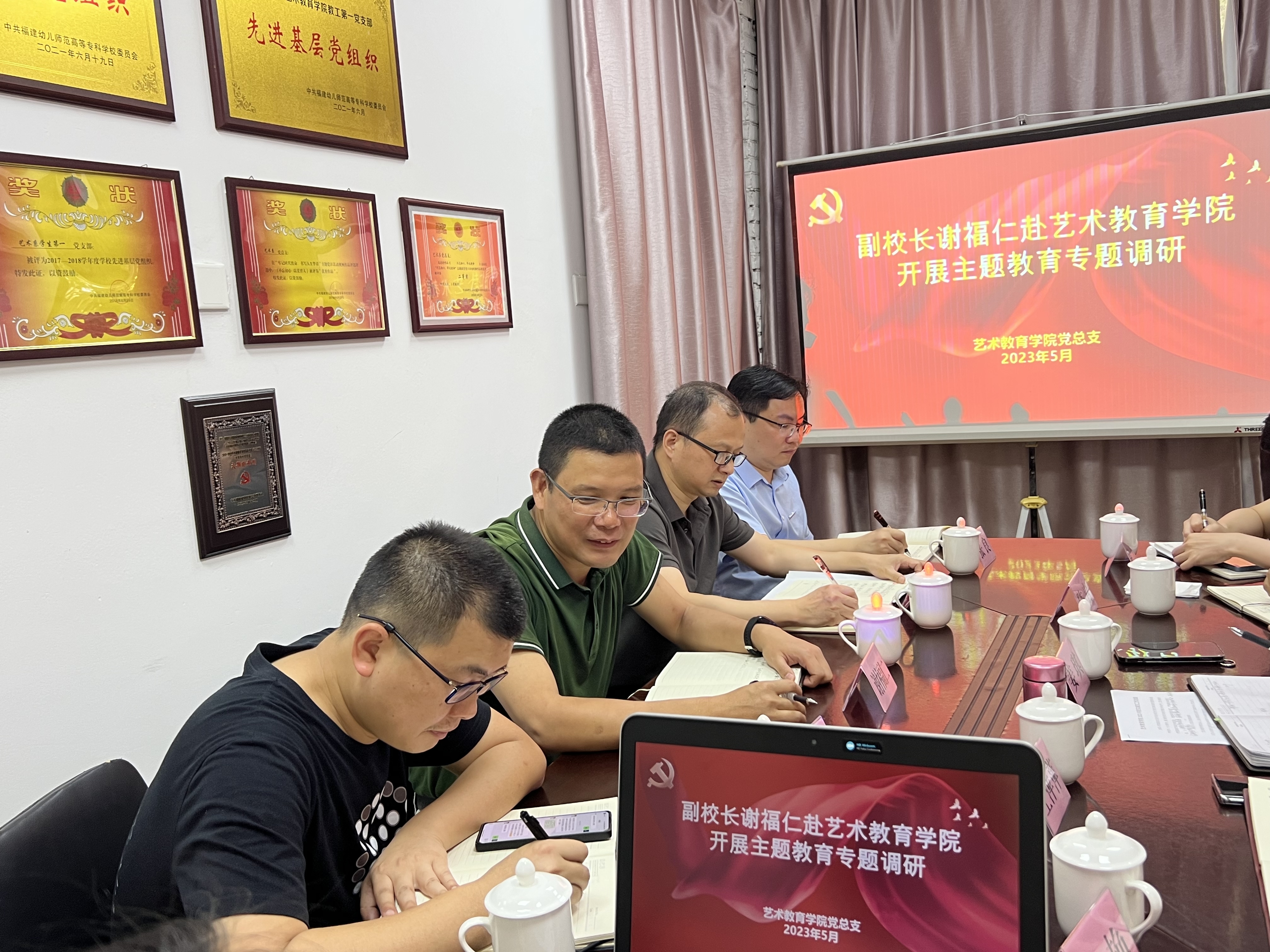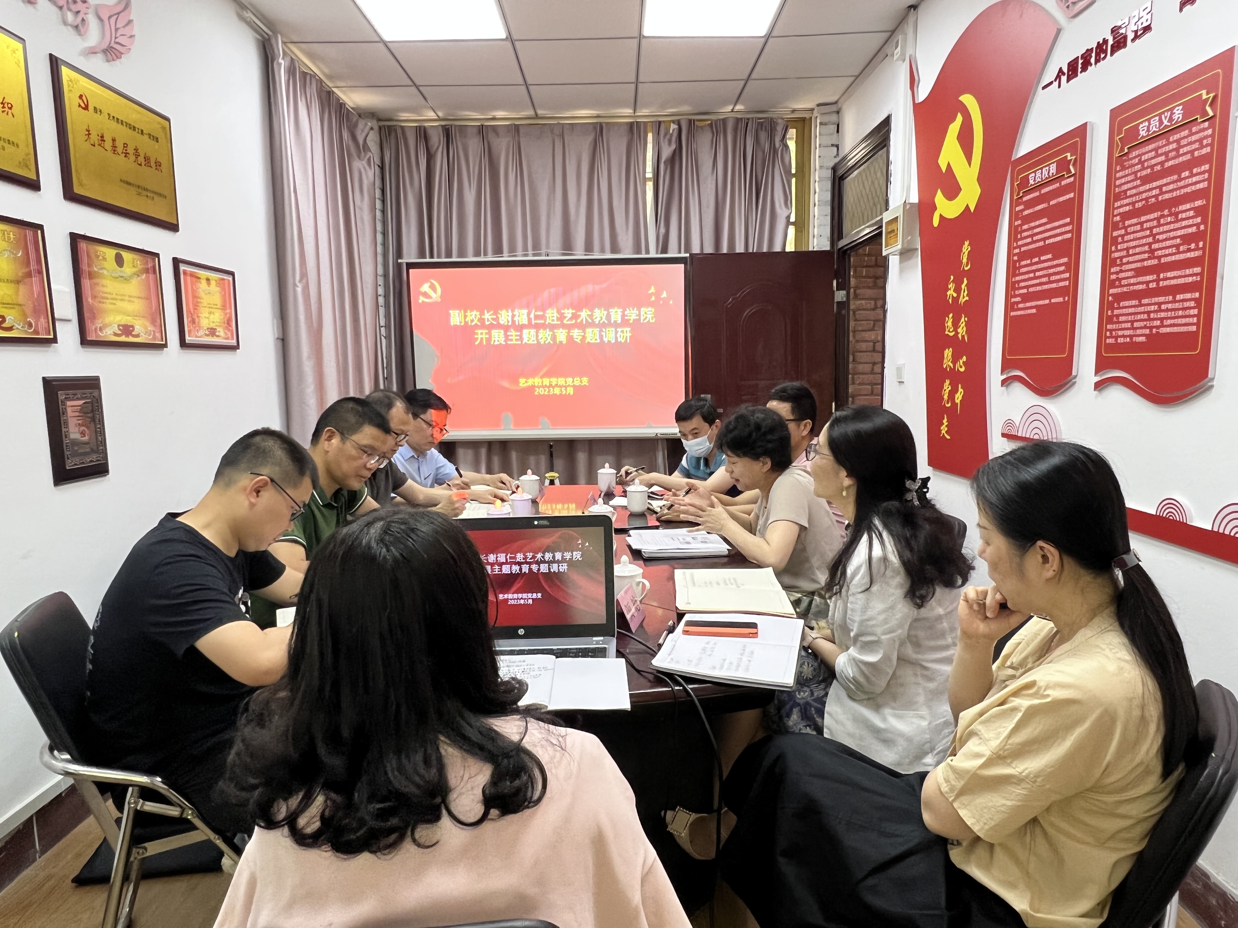 5月30日上午,谢福仁副校长带领后勤管理处、保卫处、学工部等相关部门一行赴艺术教育学院开展主题教育专题调研,艺术教育学院党政班子成员参加调研座谈会。