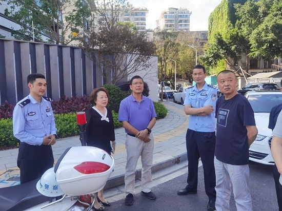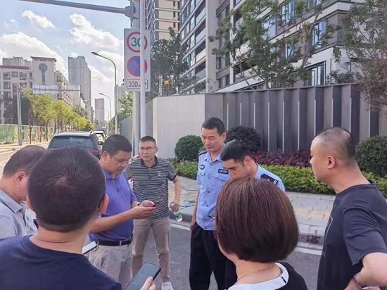 谢福仁副校长一行实地走访校园,与福州市鼓楼区交警大队就白马校区校门交通安全设施设置、交通安全标志设置等方面进行了现场交流。