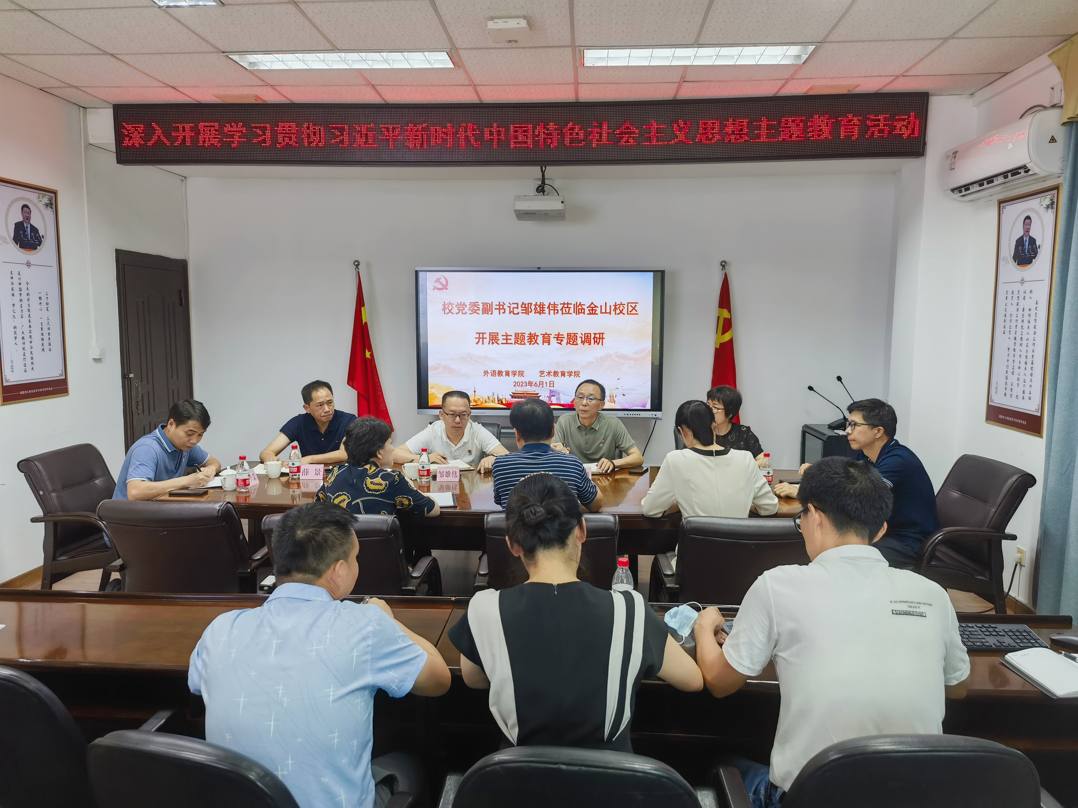 邹雄伟副书记一行实地走访校区,与外语教育学院、艺术教育学院就金山校区学生一站式社区建设、活动中心改造、教师驿站建设、融媒体建设等方面进行了调研,与会人员围绕调研主题积极发言,展开研讨。