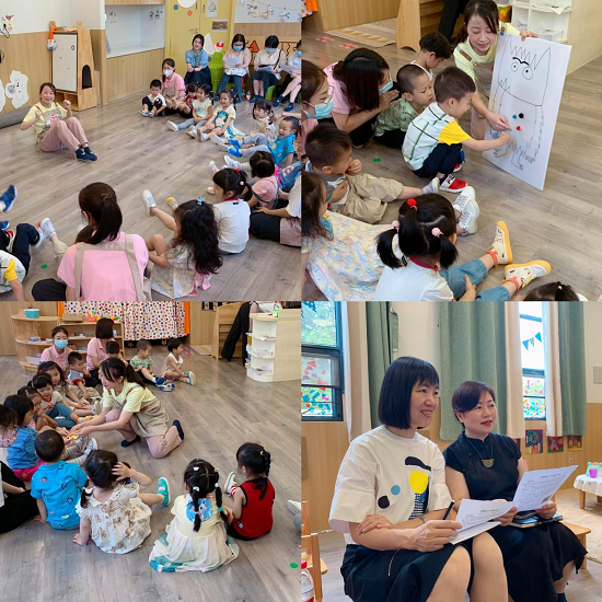在公开课前期,两位老师分别围绕所选定的婴幼儿情绪和社会性发展、幼儿感觉统合及运动发展这两个研究方向,与融侨亲子园老师联合协同教研,基于职业岗位能力要求,打破传统的幼儿心理发展和感统-运动发展理论体系,将知识按专业能力发展需求进行整合,将教学内容整合为若干个独立的学习模块,如"幼儿情绪发展与活动设计"、"幼儿前庭觉发展与活动设计"等。将绘本阅读与幼儿情绪发展活动相结合、将音乐律动、大动作活动与前庭觉训练相结合,基于幼儿身心特点及生活经验挖掘其中核心目标,同园所教师同研课程、探究教学重难点。活动设计上通过对幼儿视、听、触、位等多种感觉进行刺激,引导幼儿体会情绪、感受运动带来的乐趣,从而促进幼儿情绪、前庭觉及平衡感的发展。通过以上双师教研,落实了高校模块化教学改革,将有助于实现学生的个性化学习与发展。