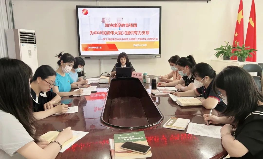 伊文婷院长围绕着习近平总书记在中共中央政治局第五次集体学习时强调的培养什么人、怎样培养人、为谁培养人这三个方面,对习近平总书记重要讲话精神进行解读。她强调,立德树人既是教育的根本任务,更是高校的立身之本。我们要以习近平总书记重要讲话为指引,积极投身教育强国实践,为全面推进中华民族伟大复兴提供有力支撑。她指出,作为师范院校思政课教师,要开好"习近平关于教育的重要论述"这门课程,牢牢把握建设教育强国的核心目标,为党育人、为国育才,要坚持主题教育开展与马院重点任务落实相结合, 扎实做好"三进"工作。我们要深刻领会与把握"坚持为党育人、为国育才"的内涵意蕴和实践要求,在坚定理想信念、陶冶道德情操、涵养扎实学识、勤修仁爱之心的同时,牢固树立"躬耕教坛、强国有我"的志向和抱负,坚守三尺讲台,潜心从教、精心从教、长期从教、终身从教,积极投身教育强国实践,为早日实现教育强国目标而不懈努力。