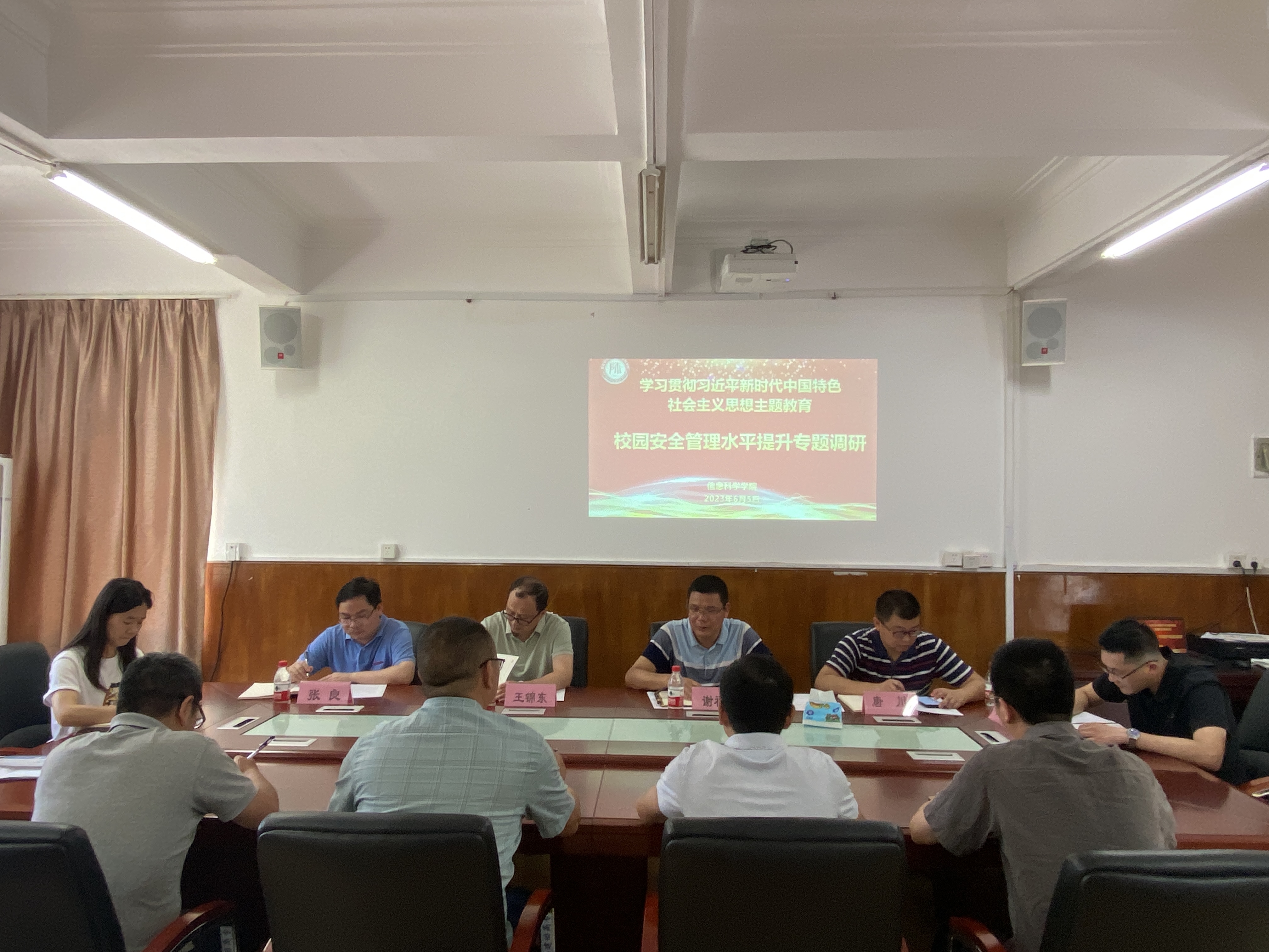 学院余深焰书记、陈宁华院长分别从学院安全管理、实习实训安全管理、学生安全教育、意识形态阵地建设情况以及希望学校给予的支持等方面进行了详细汇报;接着全体人员围绕"如何进一步强化强校园安全管理,提升安全管理水平"进行了研讨交流。