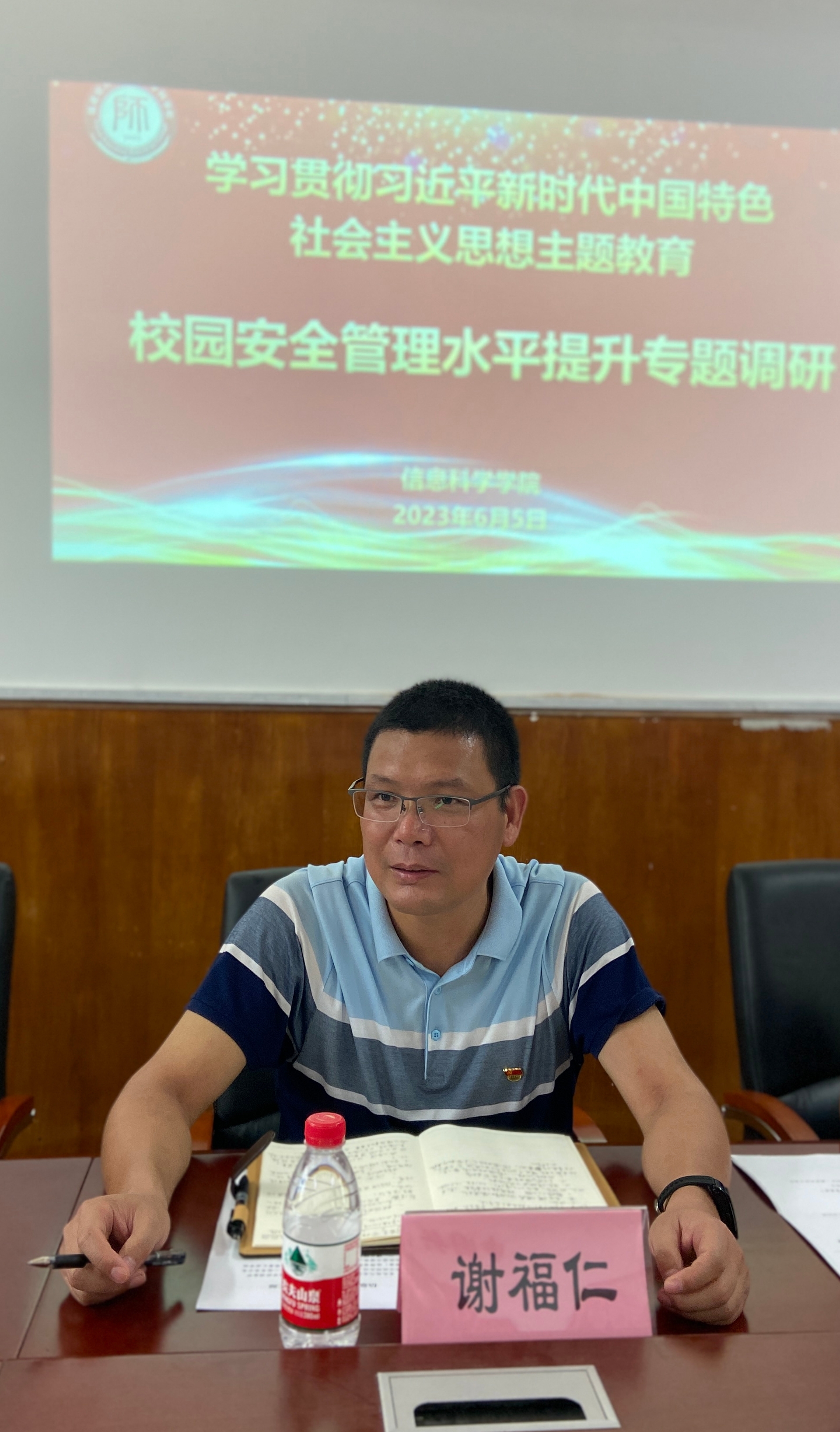 6月5日上午,校党委委员、谢福仁副校长到信息科学学院开展主题教育专题调研。后勤处唐川处长、保卫处王锦东处长、学工部张良副部长及学院党政班子成员共同参与调研。