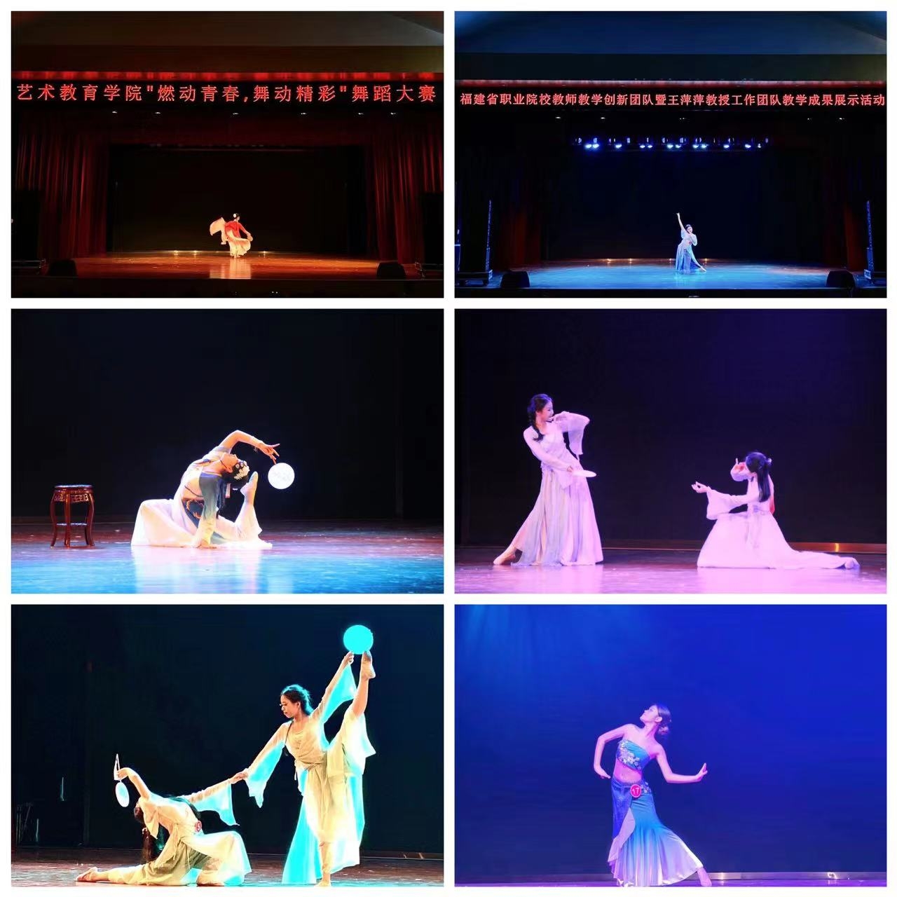 为全面展示我校大学生的青春活力与艺术才华,营造健康向上的校园文化艺术氛围。 6月8日晚,福建省职业院校教师教学创新团队暨王萍萍教授工作团队教学成果展示活动——艺术教育学院艺海拾贝"燃动青春,舞动精彩"舞蹈大赛在学校礼堂精彩上演。艺术教育学院院长王萍萍、党总支书记姜琪、学生科科长章涛等领导老师们出席比赛现场,舞蹈教研室马伟力、王程芳、陈静等老师担任比赛评委。