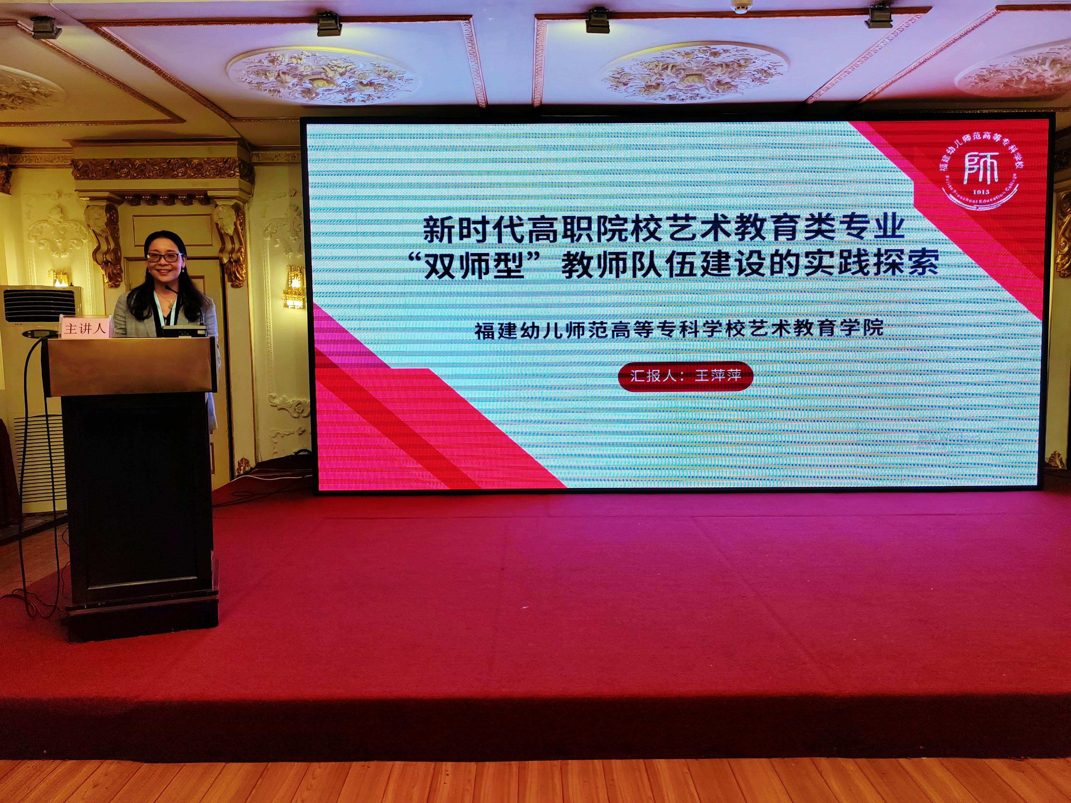 教育部职业院校文化素质教指委委员、美育专委会委员、我校王萍萍教授出席会议并作经验交流分享。王萍萍教授以《新时代高职院校艺术教育类专业"双师型"教师队伍建设的实践探索》为题,介绍了我校美育工作成效,以及依托福建省首批职业院校教师教学创新团队"艺术教育专业群"团队建设项目,培养美育"双师型"教师的探索及未来的展望,获得与会委员、专家的肯定。
