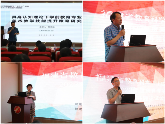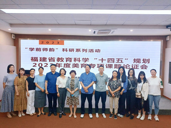 2023年6月14日下午,福建省教育科学"十四五"规划 2023年度美育专项课题《具身认知理论下学前教育专业美术教学技能提升策略研究》开题报告会在实训大楼AR/VR会议室举行。本次开题报告会邀请福建省教科所所长吴明洪、福建省教科所主任郭少榕、福建省美育研究院福建师大美术学院博士生导师胡泊莅临指导,学前教育学院副院长林萍、课题组成员和学前教育学院青年教师等参加了会议。