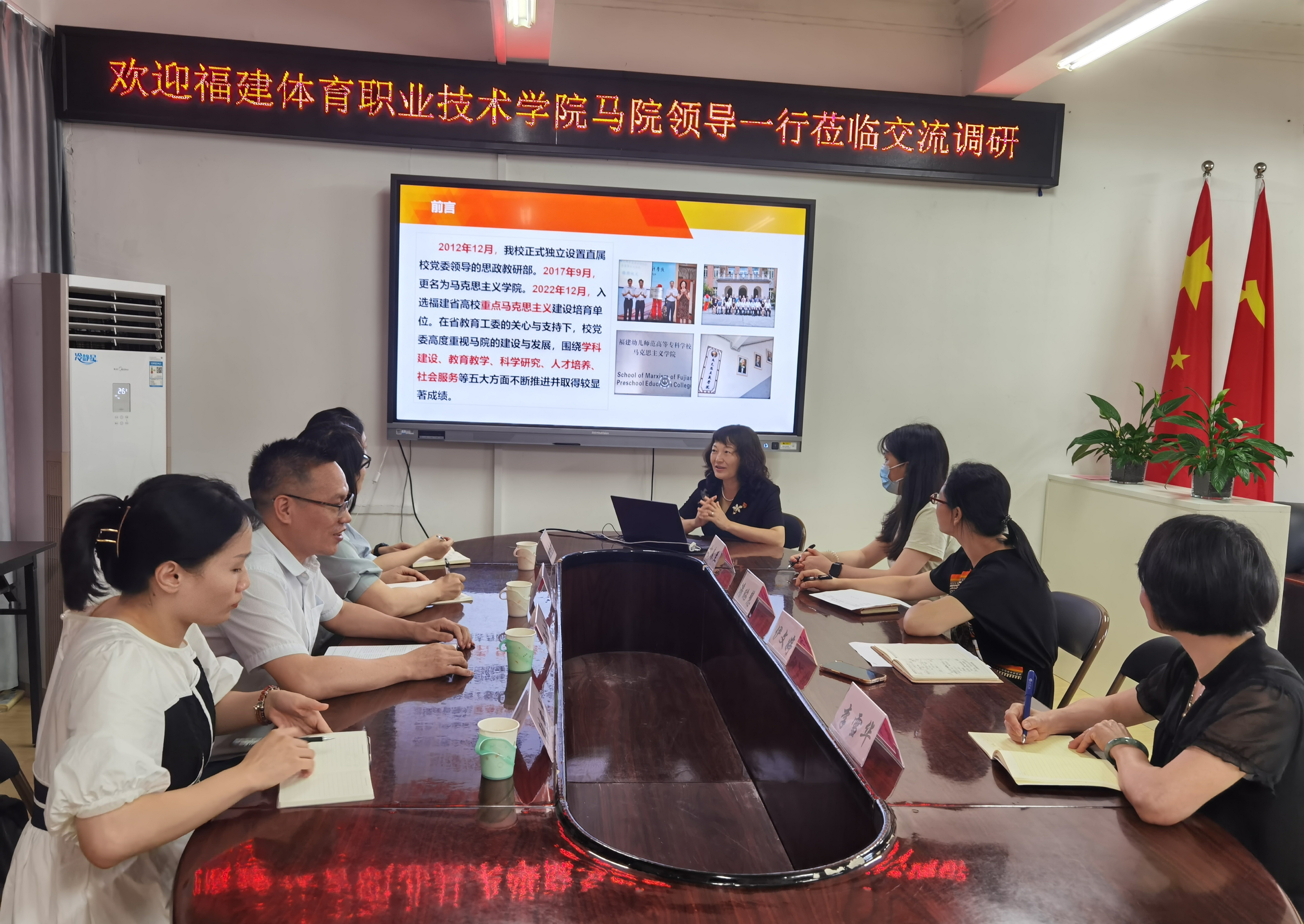 6月15日下午,福建体育职业技术学院马克思主义学院副院长许吉团(主持工作)一行4人莅临我院开展支部连学暨主题党日活动。本次会议由福建师德建设研究中心主办,由马院院长伊文婷主持。