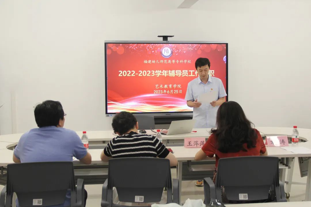 为深入学习贯彻党的二十大和二十届一中、二中全会精神,不断推进学习贯彻习近平新时代中国特色社会主义思想主题教育,提高学院辅导员的思想政治素养和教育管理能力,充分发挥辅导员考核的激励导向作用,2023年6月25日下午,艺术教育学院举办了2022-2023学年辅导员述职大会。艺术教育学院党总支书记姜琪、院长王萍萍、学生工作部副部长张良、学生管理科科长章涛以及学院辅导员共同参加了会议。会议由章涛主持。