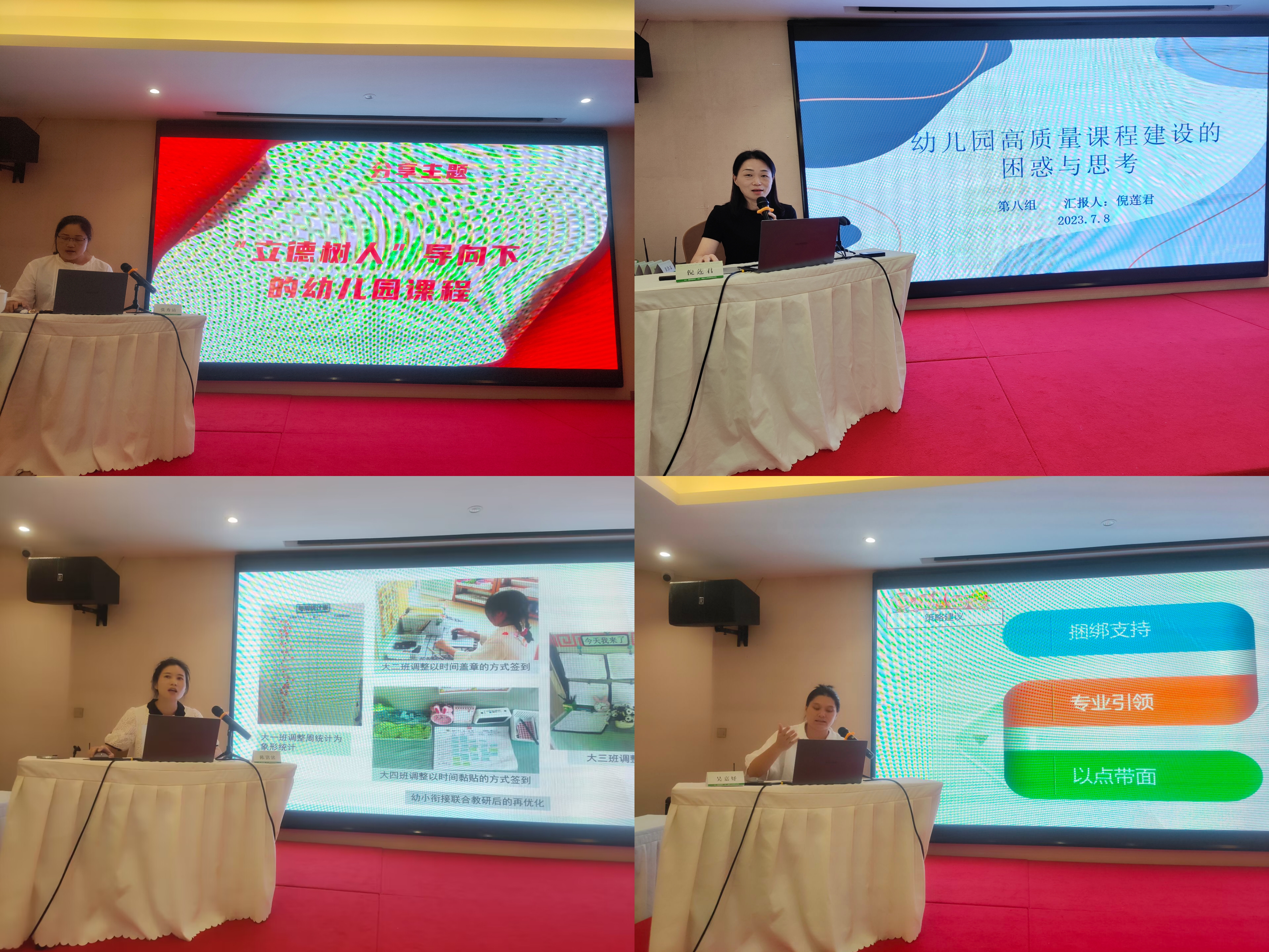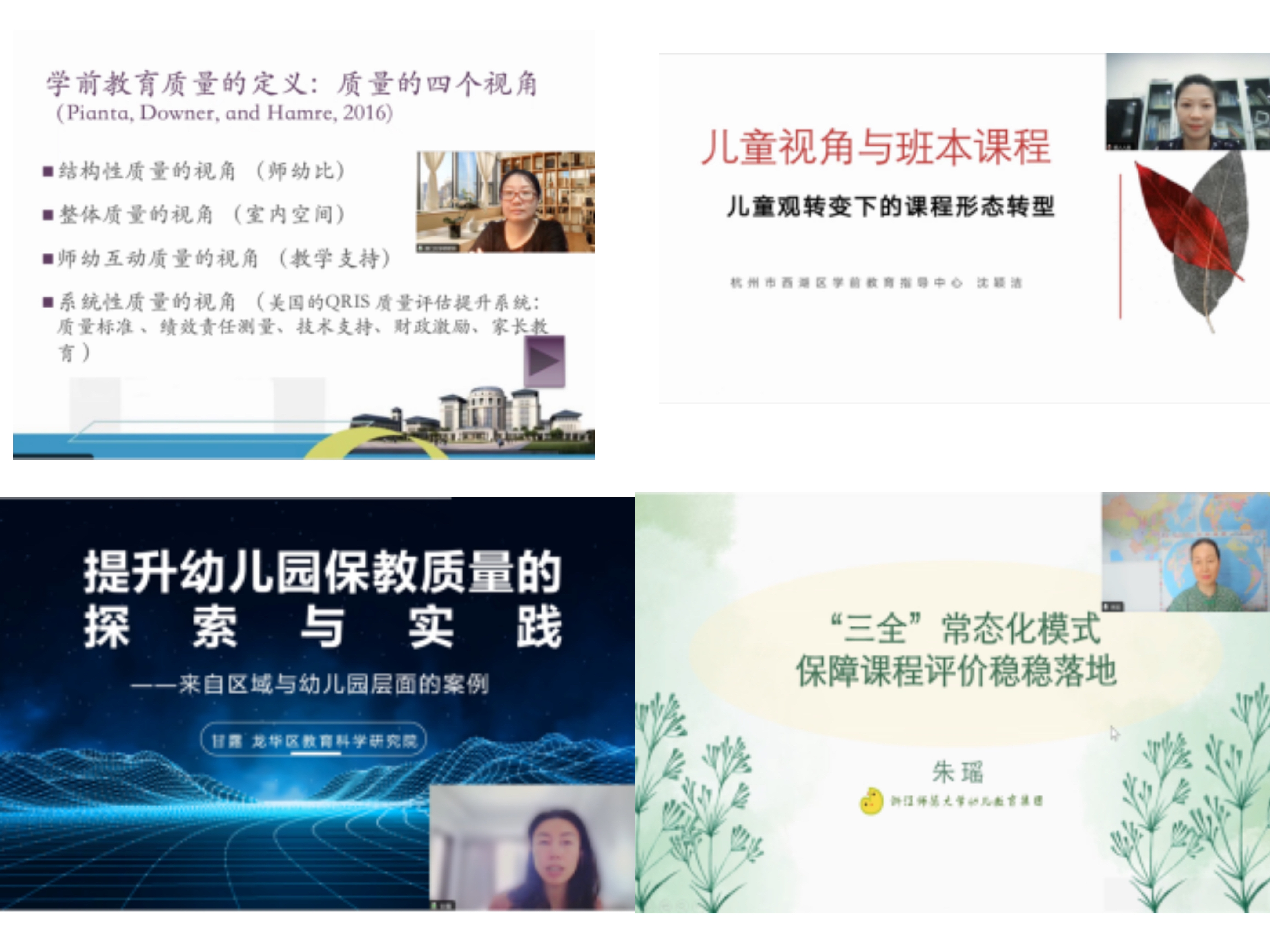 本次教学副园长提升培训旨在围绕"基于质量的幼儿园课程建设"研修主题,帮助实验幼儿园教学副园长更新拓展保教理念,提升优化课程建设、指导保教实践、促进教师发展的专业能力,进一步提高幼儿园保教管理专业化水平。本阶段的集中研修,邀请了澳门大学教授胡碧颖、杭州市西湖区学前教育指导中心幼教教研员沈颖洁、深圳市龙华区教育科学研究院学前教研员兼龙华区教科院幼教集团附属幼儿园园长甘露等国内知名专家为学员开展专题讲座,围绕高质量发展、幼儿园课程建设、保教质量评价工具等专题进行了深入的研讨和交流,帮助实验园教学副园长们开拓教育视野,夯实理论基础,提升保教指导能力。