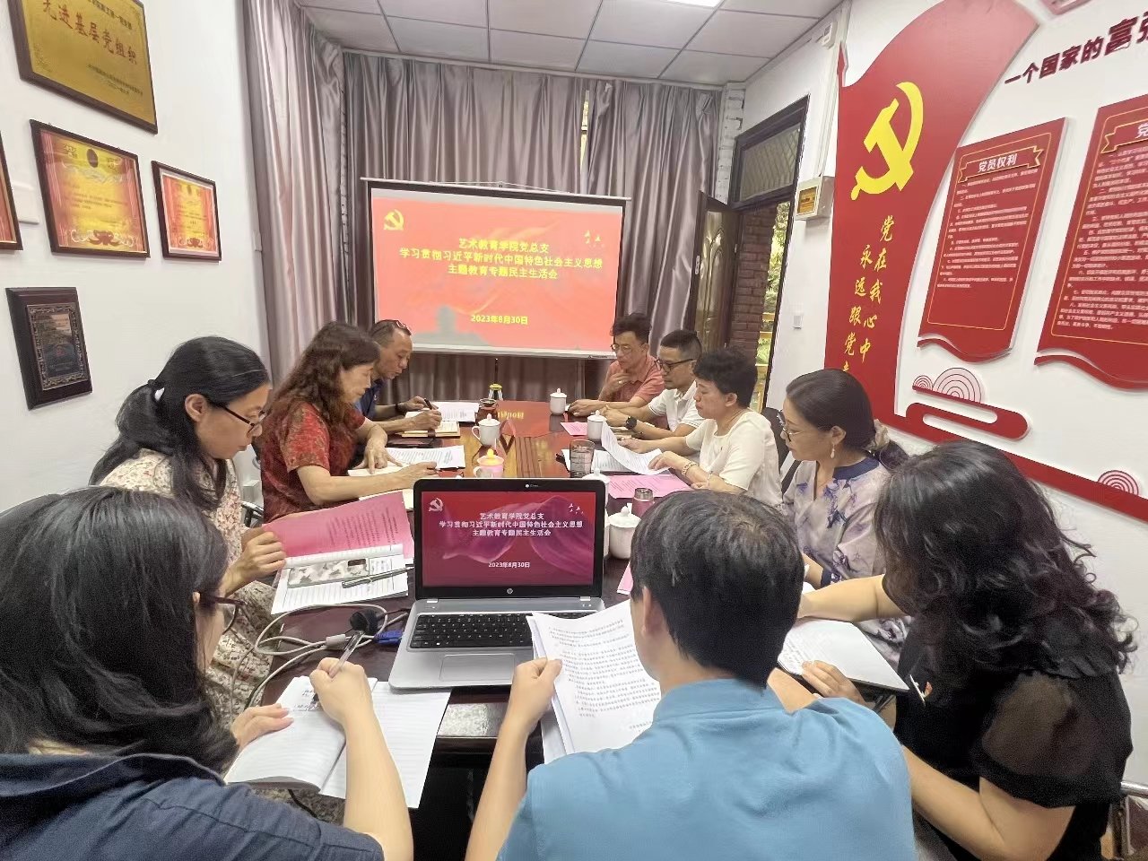 8月30日下午, 艺术教育学院党总支开展学习贯彻习近平新时代中国特色社会主义思想主题教育专题民主生活会。校党委委员、副校长陈凤玉带领学校主题教育督导组成员宣传部部长严桂泉、人文科学学院组织员黄洁钰一行到会指导。学院党总支班子成员参加会议,会议由学院党总支书记姜琪主持。