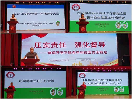 为进一步统一思想、明确目标、突出重点、压实责任,确保新学期各项工作顺利开展,2023年8月31日上午,学前教育学院在学校礼堂召开2023-2024学年第一学期开学初教职工大会,学院领导班子和全体教职工参会。