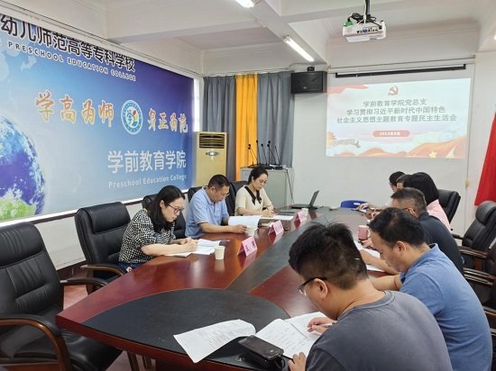 8月31日下午,学前教育学院党总支召开学习贯彻习近平新时代中国特色社会主义思想主题教育专题民主生活会。校党委书记鲍仕梅,校主题教育协调推进组刘舒敏主任及王瑾科长莅会指导,会议由党总支书记王标主持,党总支委员参加会议。