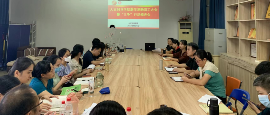 2023年8月31日上午,人文科学学院在B207会议室召开2023-2024学年第一学期期初工作会议暨"三争"行动推进会。姜平院长主持会议,学院全体教师参会。