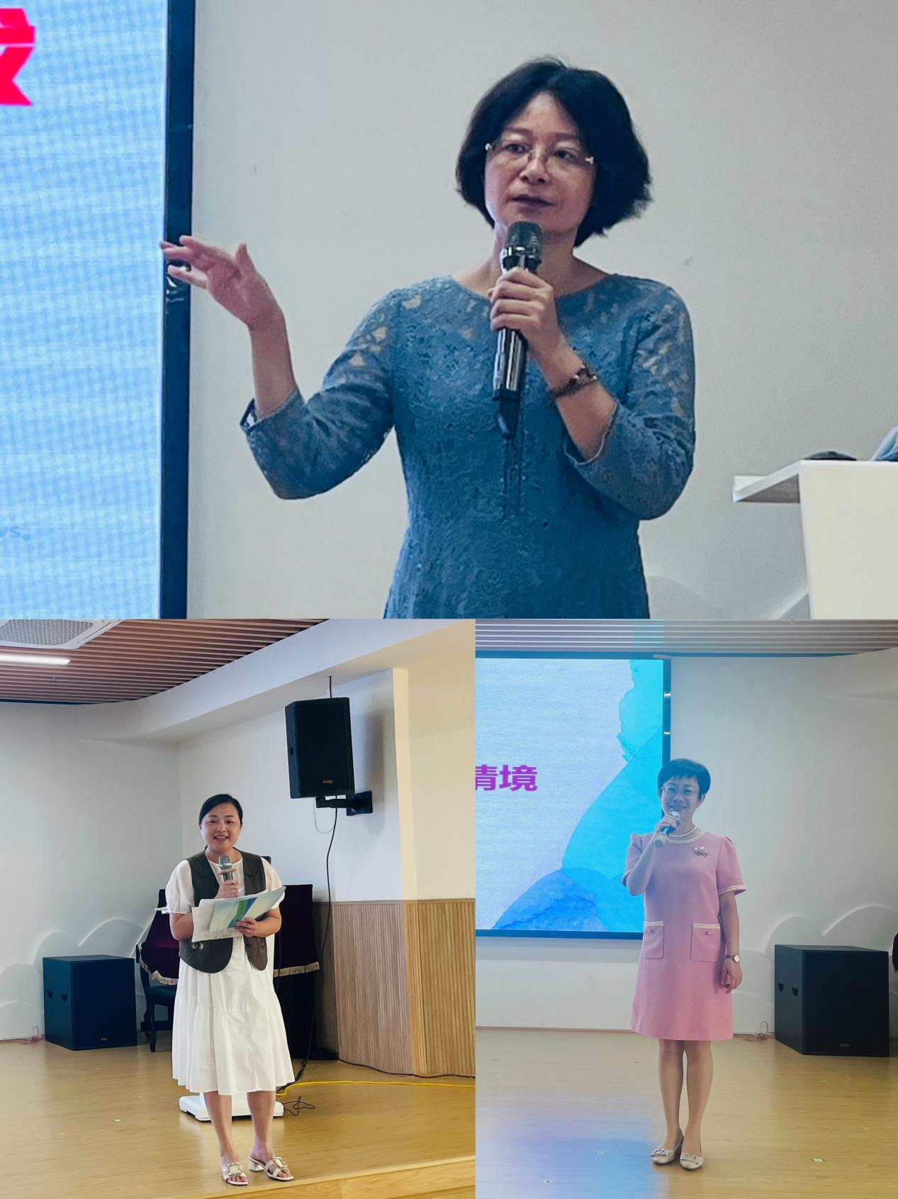 蔡蔚文老师、张婕副园长、周奕苹园长分别担任游戏、生活、教学工作坊坊主