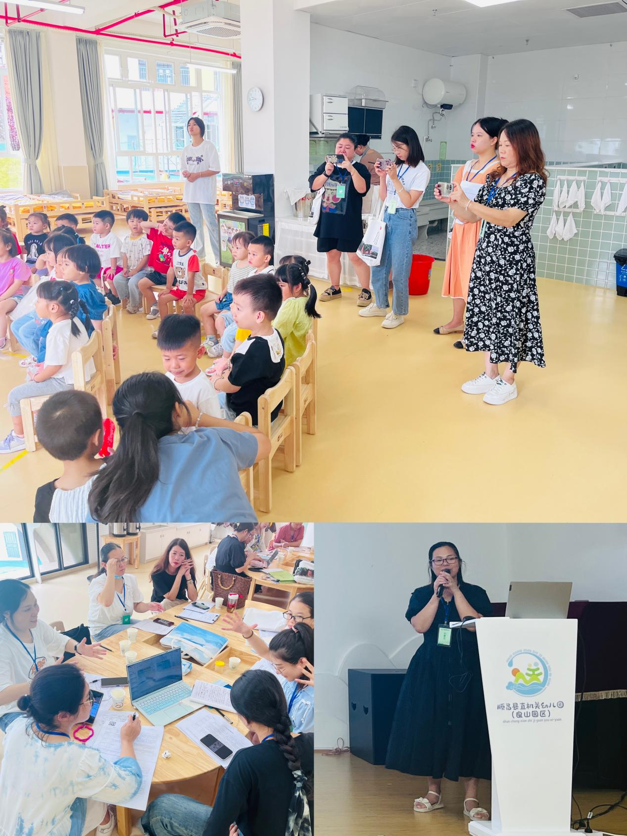 本次培训由我校彭琦凡教授的专题讲座"以评促建 推进'幼有善育'——《幼儿园保育教育评估指南》解读"开场,接着围绕影响农村幼儿园保教质量提升的瓶颈问题,采用诊断干预式研训实施精准帮扶,聚焦生活活动的自主性与规则建立、游戏活动环境与材料的学习支持、生活化数学教学设计的质量评价等专题,邀请省内幼教名师、学科教学带头人、学校教师组成讲师团,通过专题讲座、现场观察与诊断、研讨互动、案例解析等多元、立体的培训方式,帮助学员深入理解保教质量自我评价工具的内涵与运用。此外,讲师团还指导顺昌县建立跟踪指导机制和后续培训体系,支持实施第二、第三阶段的研训,持续推动农村幼儿园保教水平的提升。