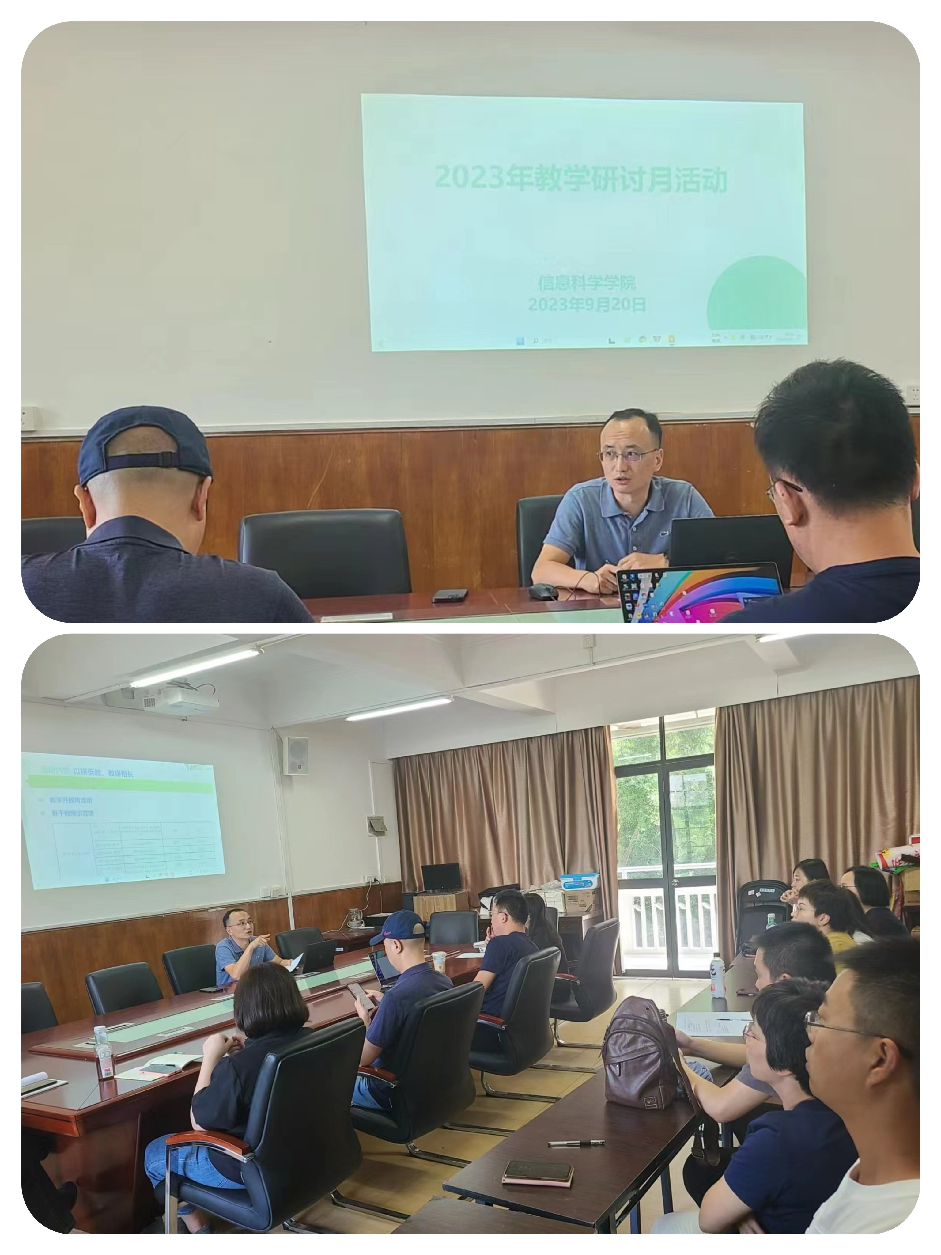 为全面贯彻党的教育方针,落实立德树人根本任务,进一步推进教育教学改革,提高课堂教学质量,促进五育融合,检验教学成果,展示学生风采,2023年9月20日下午,信息科学学院在306会议室召开"2023年教学研讨月"专题部署会,会议由院长陈宁华主持,信息科学学院全体教师参加。