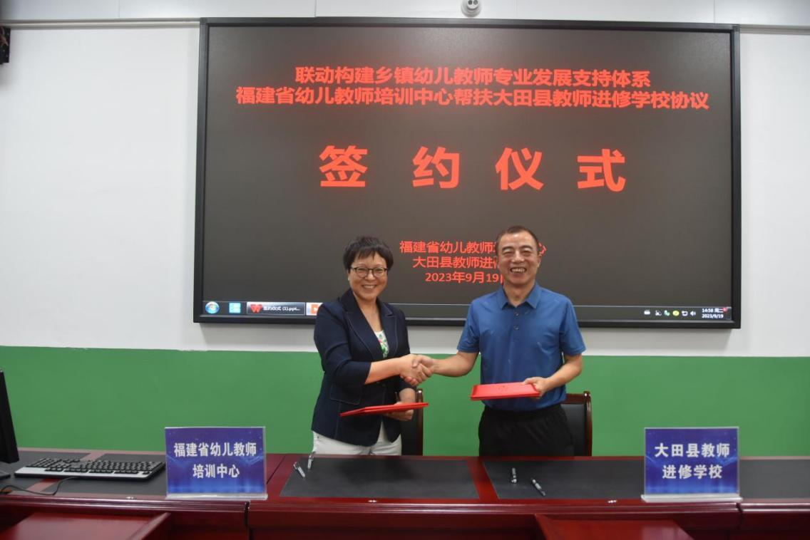 福建省幼儿教师培训中心主任彭琦凡教授与大田县教师进修学校校长林再生签订帮扶协议书