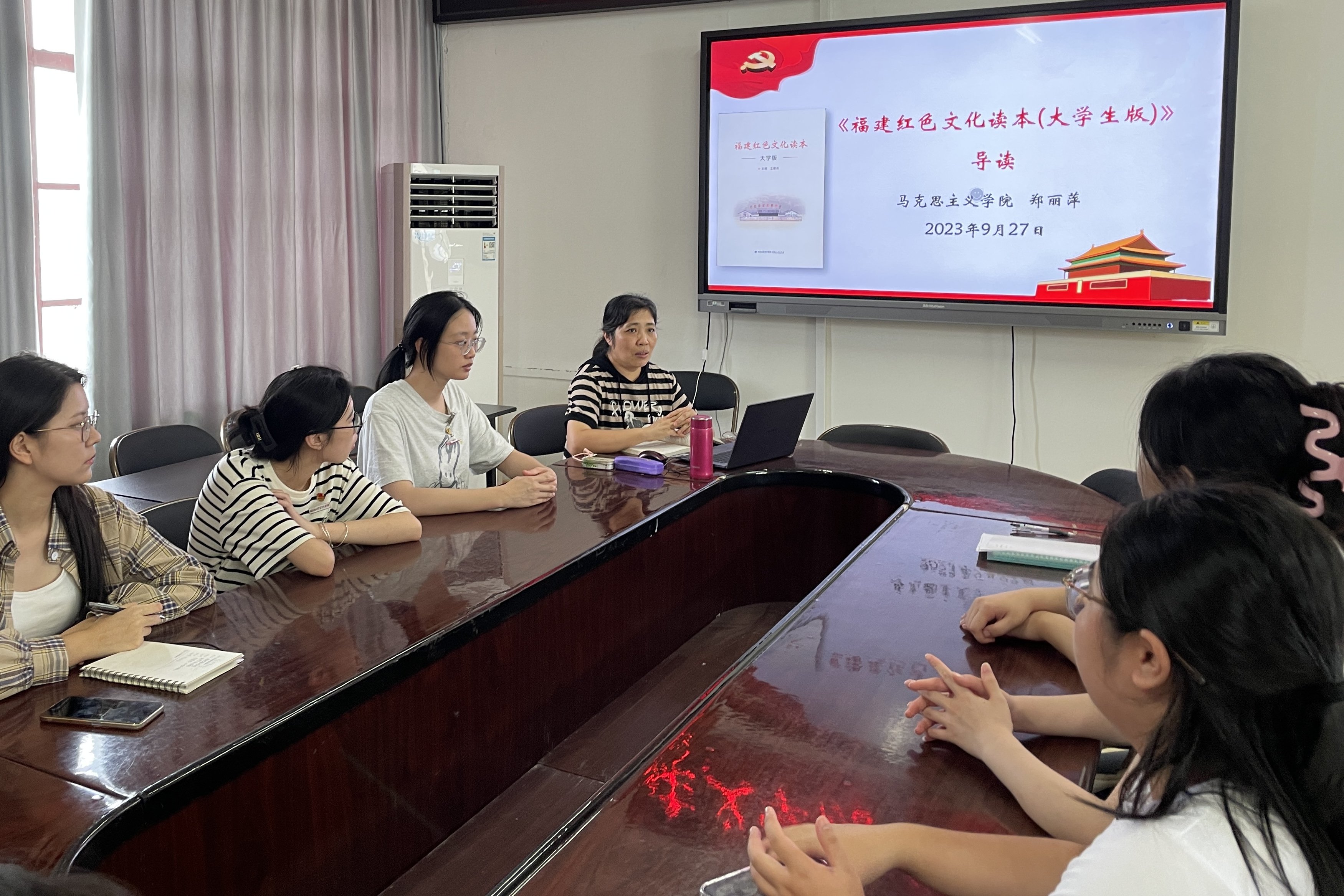 2023年9月27日,我校习近平新时代中国特色社会主义思想读书社在院部教研楼601开展《福建红色文化读本(大学生版)》专题导读活动,读书社全体成员参与。