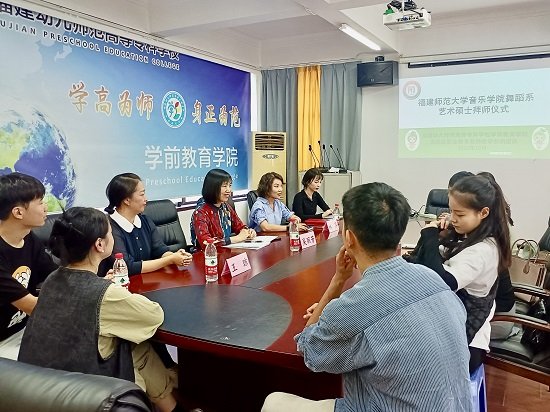 作为首批国家级职业教育教师教学创新团队建设单位,学前教育学院积极借鉴"双师型"和"师徒制"的教育理念,进一步发挥创新团队的示范引领作用。本学期,我院持续推进与福建师范大学音乐学院的紧密合作,夯实我校教育实践基地的指导能力,于2023年10月17日下午,在406会议室隆重举行了教育实习研讨会及拜师仪式。参加本次拜师仪式的有学前教育学院吴丽芳院长、林萍副院长、福建师范大学音乐学院舞蹈系负责人陈育燕教授、学前教育学院舞蹈教研室主任王琼和舞蹈教研室老师,以及22级福建师范大学音乐学院舞蹈系艺术硕士。