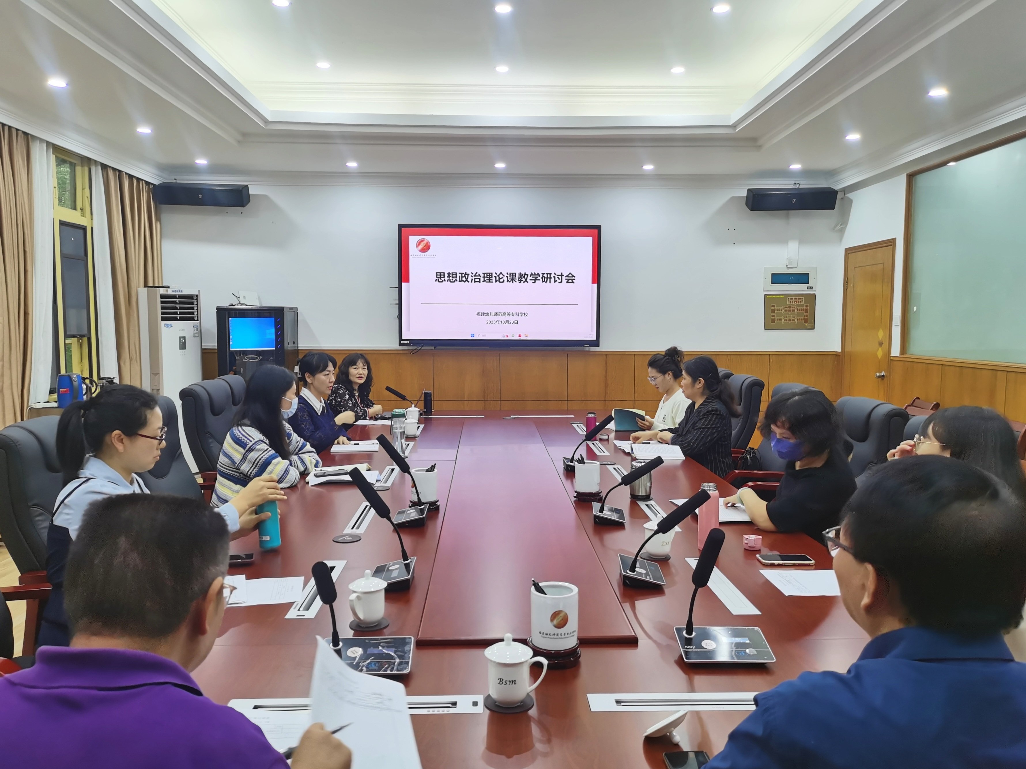 为进一步提高我校思想政治理论课的教学质量,推动教师教学水平的提升,2023年10月23日下午,马克思主义学院在行政楼会议室开展"教研月"活动暨思想政治理论课教学研讨会。本次研讨会由伊文婷院长作《习近平新时代中国特色社会主义思想概论》课第十五章"坚持'一国两制'和推进祖国完全统一"教学展示。校党委书记鲍仕梅、校长林伟川、副校长郑晓生亲临现场,与教师们共同学习、交流和探讨。