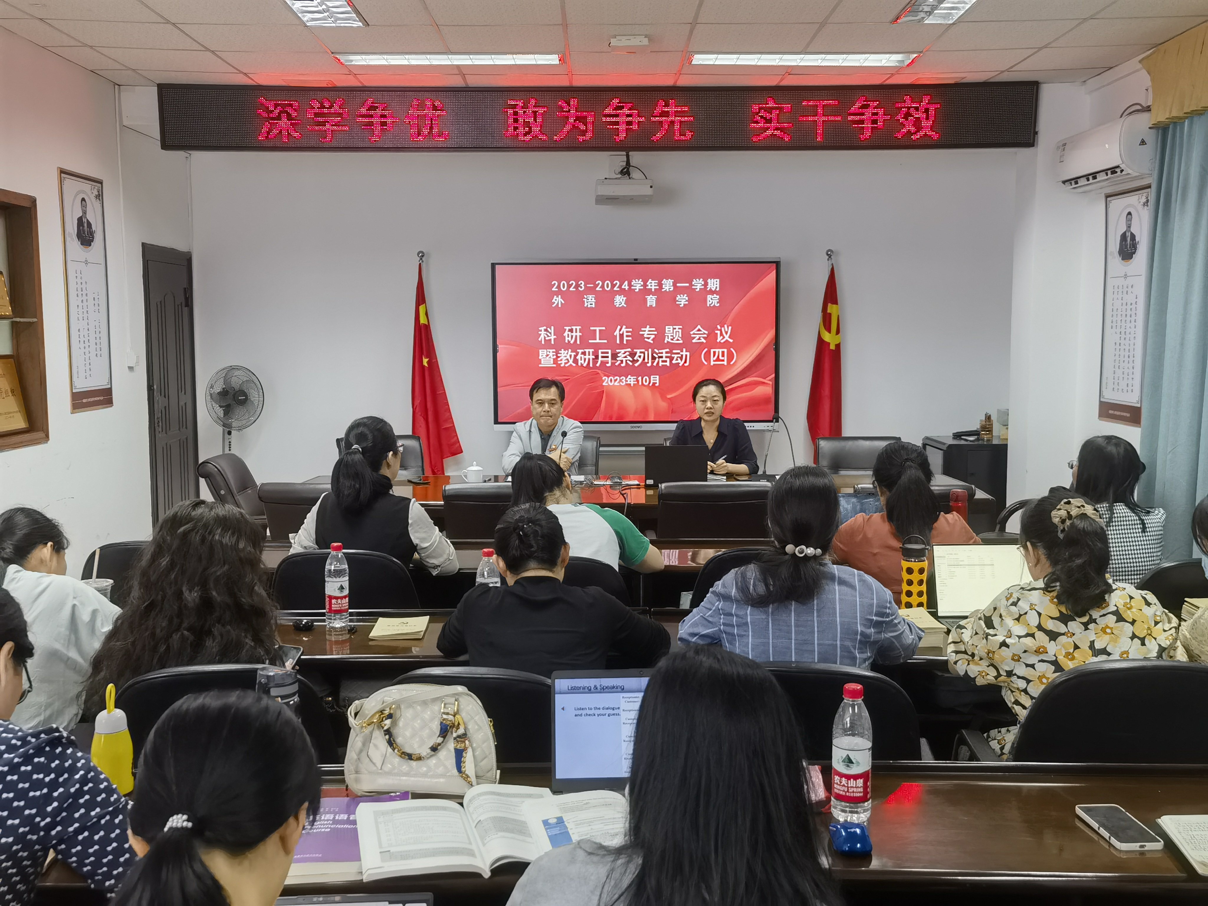 为提高教师们的教科研水平,发挥科研引领作用,强化科研兴校意识,赋能学校教育高质量发展,10月25日下午,外语教育学院以教研月系列活动为依托,召开了2023-2024学年第一学期科研工作专题会议。学院副院长(主持工作)陈文华教授主持会议,全院教师参加会议。