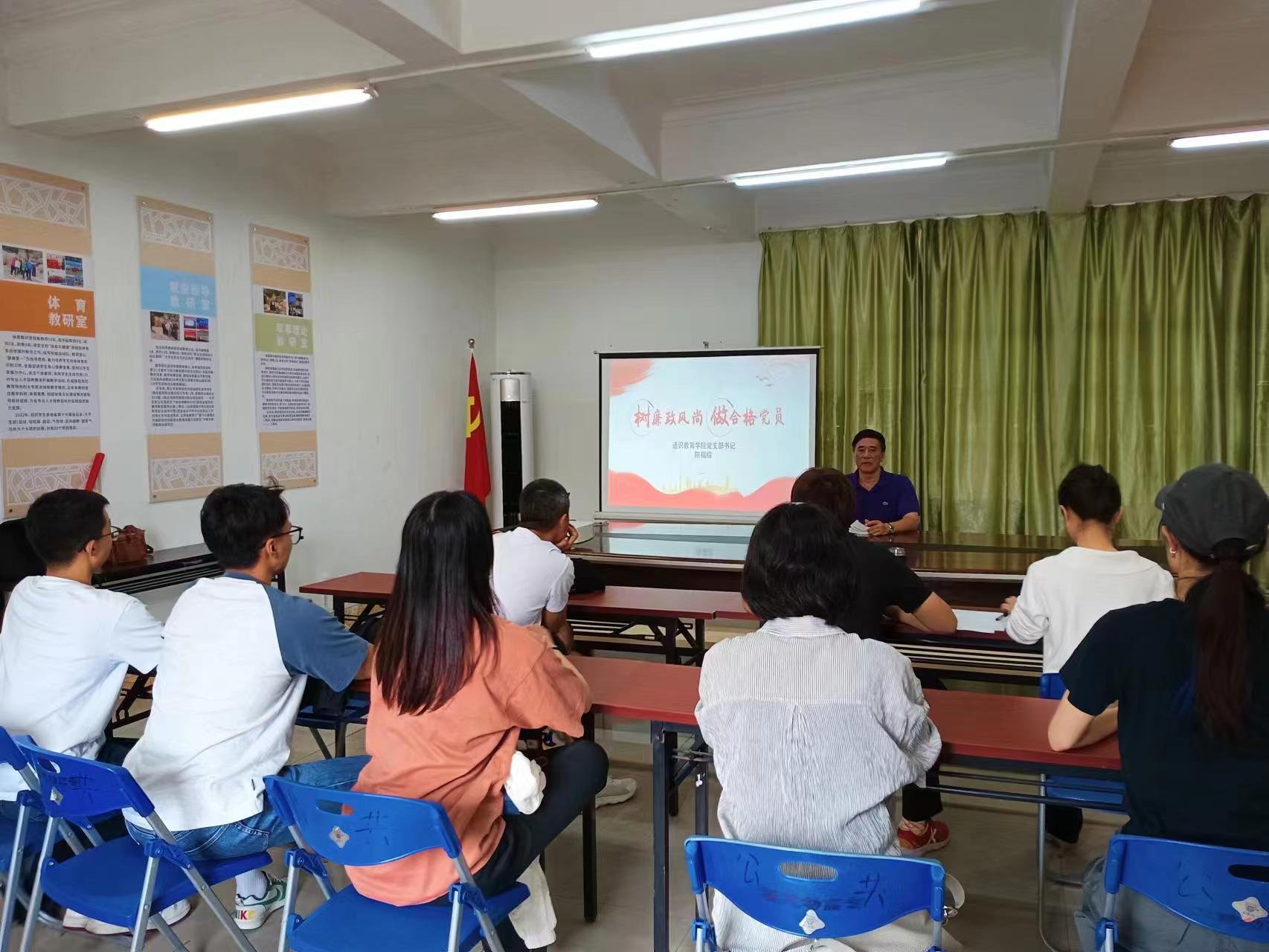2023年10月25日,通识教育学院党支部在系部楼506会议室开展"树廉政风尚,做合格党员"的主题党课学习,会议由陈福榕书记主持并讲授,全体党员共同参与。