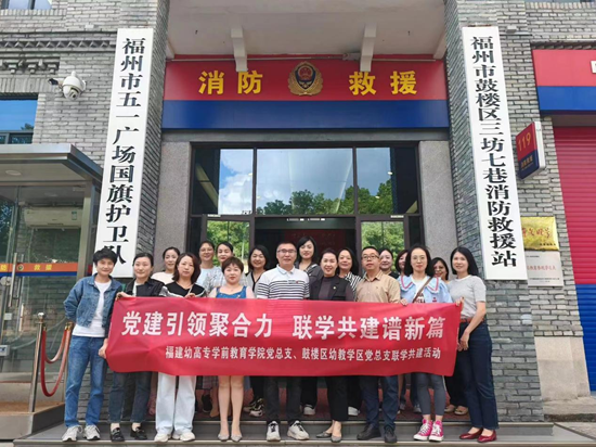 为巩固学习贯彻习近平新时代中国特色社会主义思想主题教育成果,教育引导党员教师以先进典型为榜样,激发党员教师爱岗敬业的工作热情,2023年11月2日,幼高专学前教育学院党总支与鼓楼区幼教学区党总支开展互联共建活动,共赴福州市鼓楼区三坊七巷消防救援站(五一广场国旗护卫队)参观学习、实践体验。