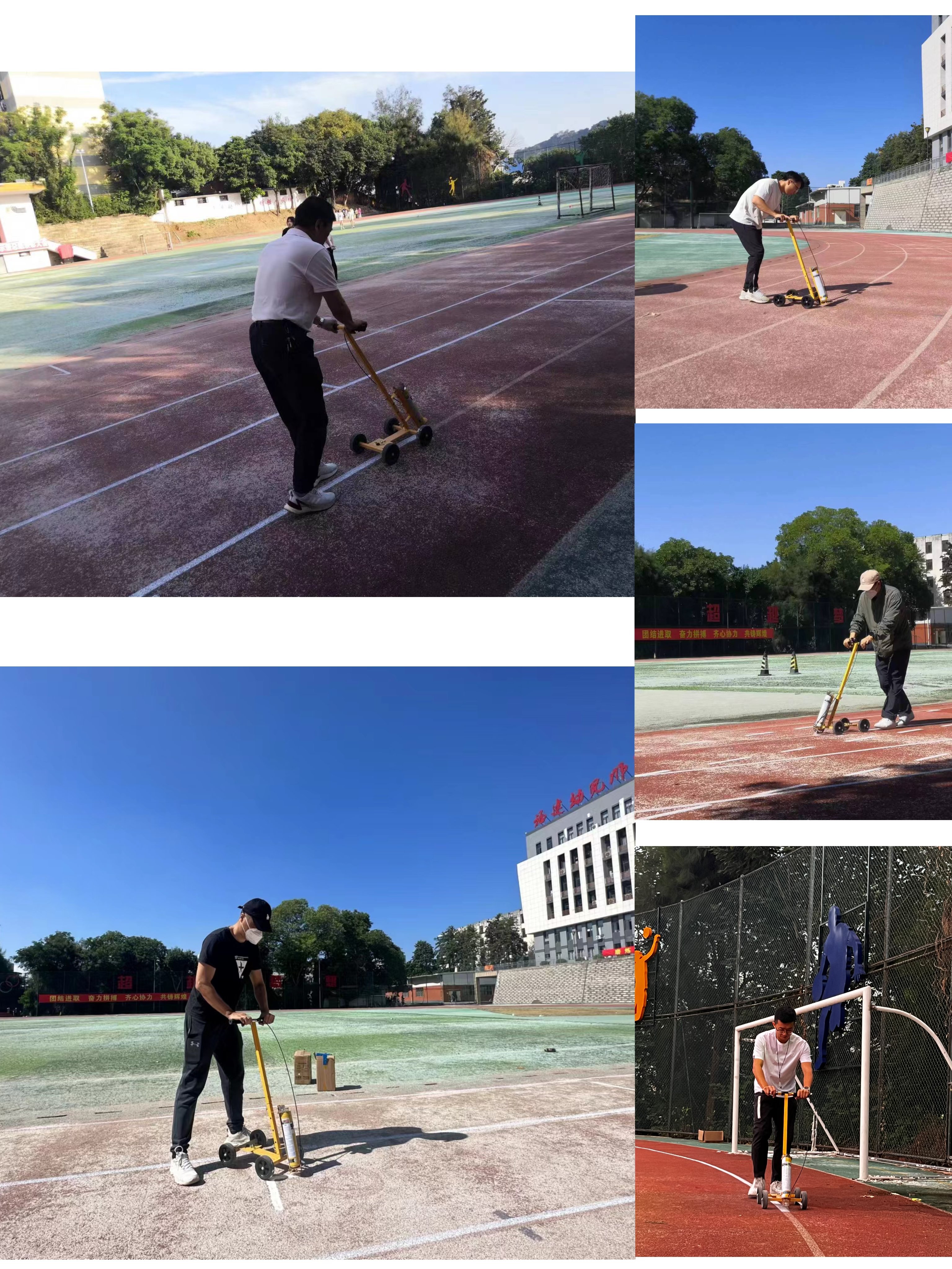 为保障校运会顺利进行,11月3日,在我院体育教研室主任卓存杭老师带领下,李洪星、黄鹏辉与陈辉斌等三位青年教师在仓山校区田径场开展划线翻新工作。从采购划线物资到现场划线工作的开展,体育组教师亲力亲为。从早到晚,顶着烈日,手拿划线推车,带着防护口罩,不辞辛劳的展开着划线工作,大大节省了成本并提高了效率。工欲善其事,必先利其器。经过从早到晚的认真工作,整个田径场焕然一新,为赛事的顺利进行和运动员安全竞赛,提供了更好的运动环境。