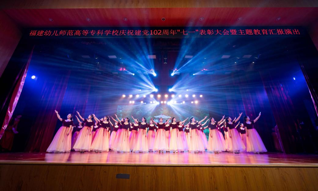 福建幼高专长期致力于高素质艺术师资艺术人才的培养,艺术教育学院在"以美导人奋进,以德育人求艺"理念指引下,全方位浸润式开展音乐党史专场演出、主题教育汇报演出、版画作品展等"艺心向党"活动,将课程思政深度融于艺术实践活动,持续提升学生的审美与人文素养、艺术实践能力。