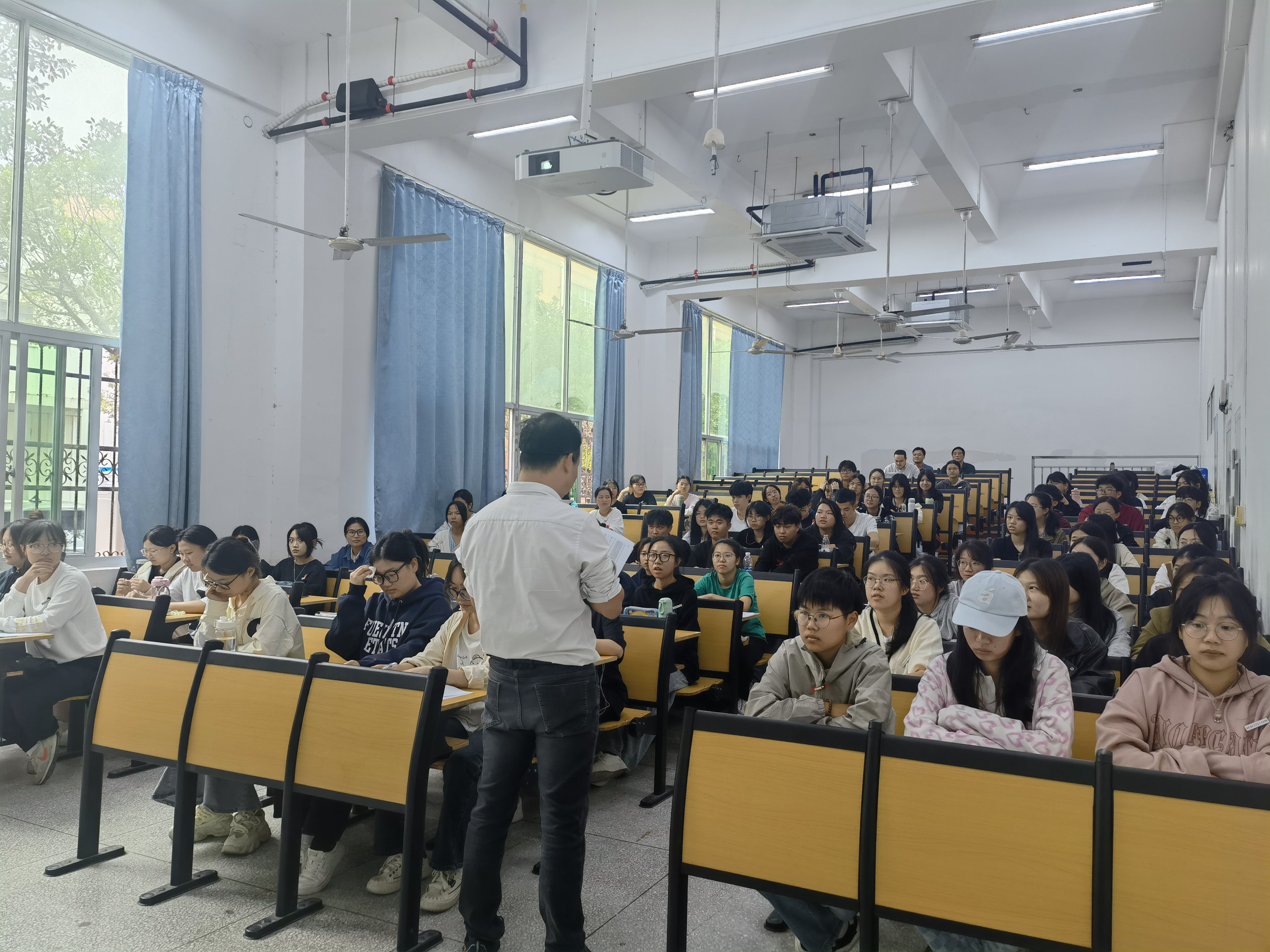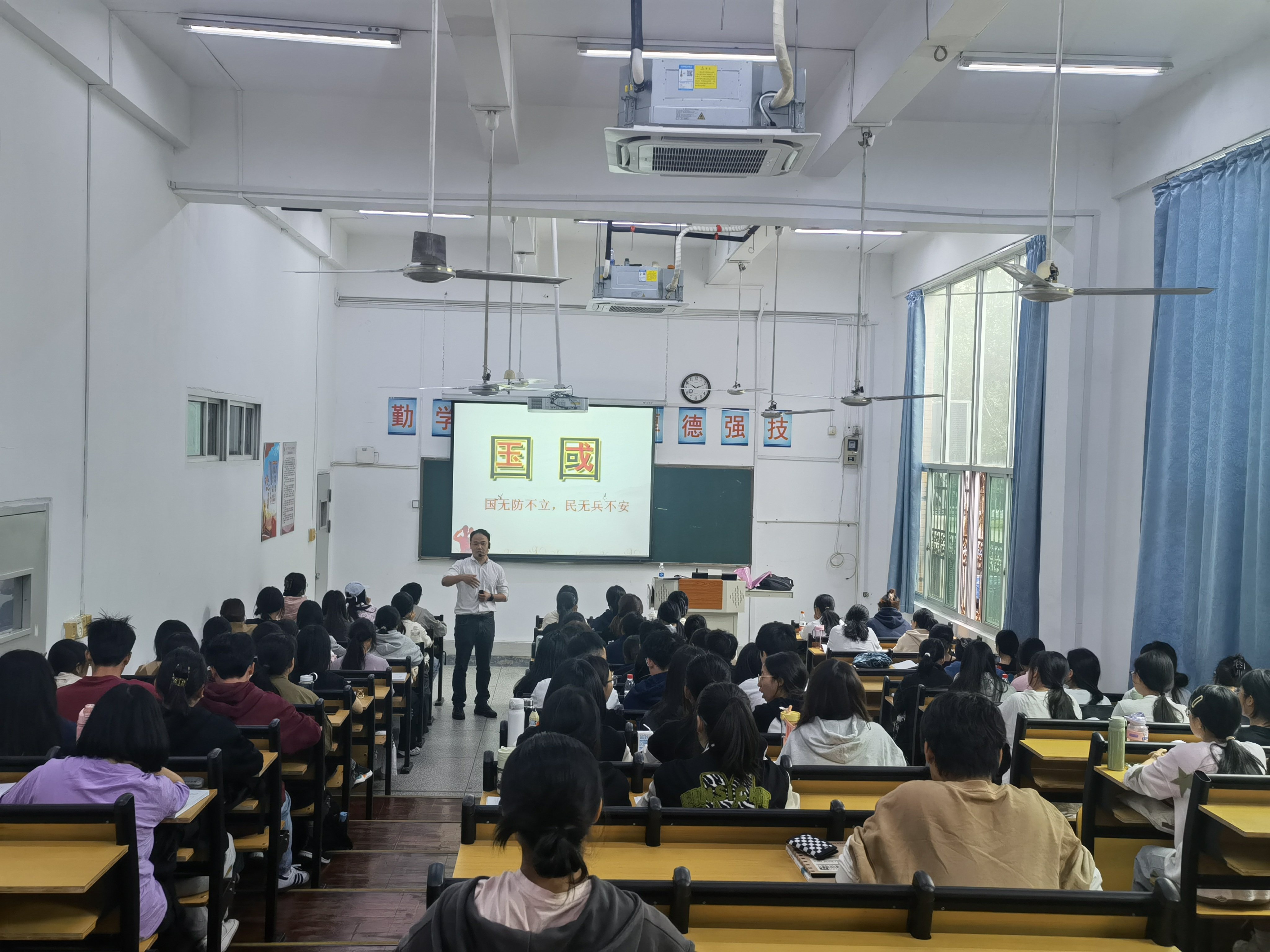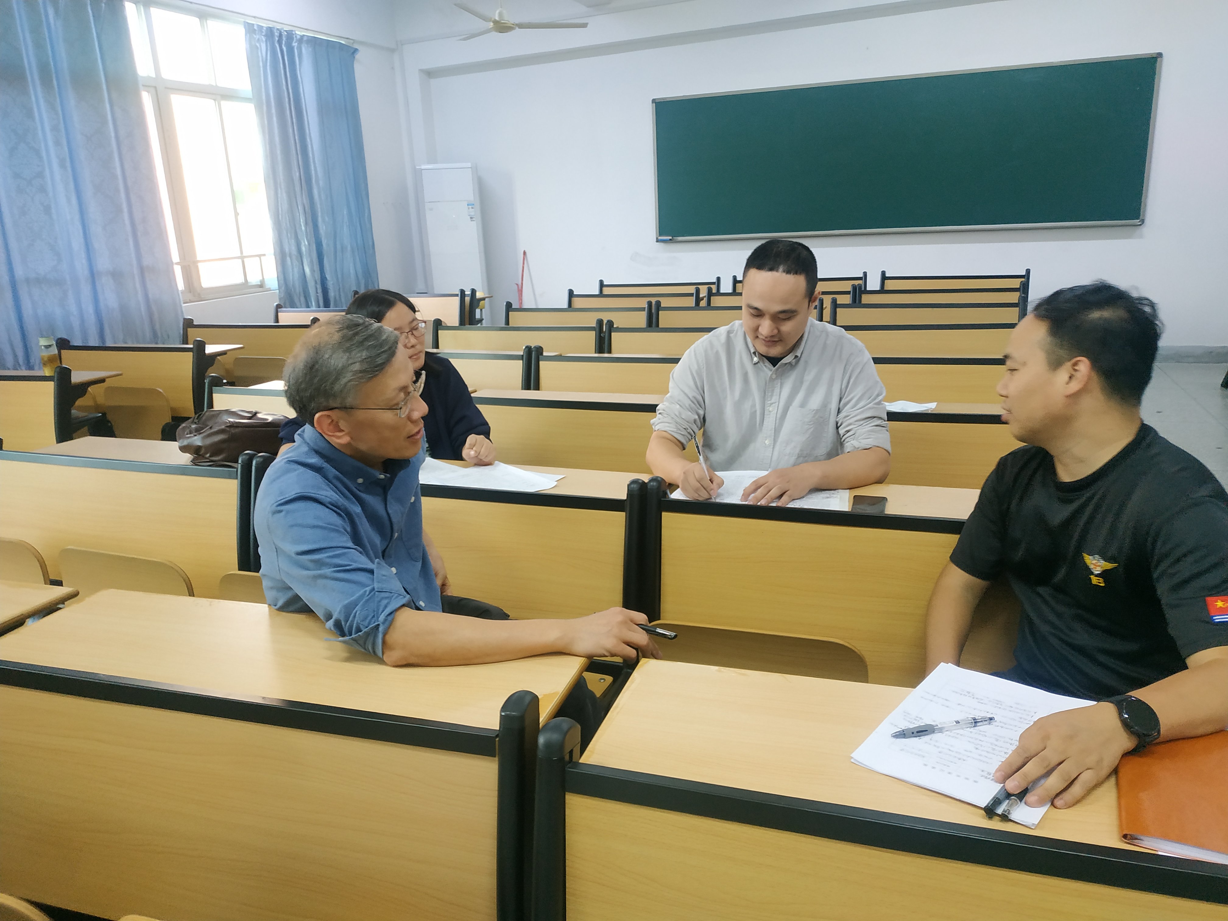 11月2日和11月7日赖联泓、李猷艺两位老师在金山校区分别开设"中国地缘环境概况""国防概述"公开课。陈福榕院长、郑炜副院长、寇蜀慧老师、外语教育学院林祥昊书记及教研室教师到场指导点评。