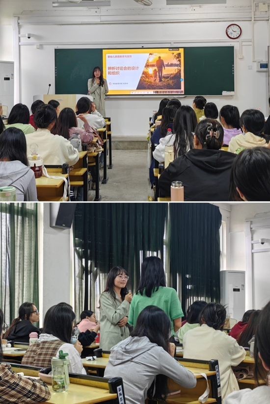 国家级创新团队负责人、学前教育学院院长吴丽芳教授深度参与了本次公开课的指导和研讨工作,在正式开课前与林茉梓老师一同研课、磨课,并提出针对性建议;在课后组织前来听课的教师对本次公开课内容进行充分的交流研讨,对林茉梓老师在教学过程中体现的"理实一体"教学设计理念表示肯定,其他教师随后就课堂教学内容和方法改进逐一展开点评。本次公开课的成功开展不仅充分体现了我院"青蓝相继,薪火相传"的优良传统,更展示了国家级职业教育教师教学创新团队有效辐射教学经验、促进青年教师专业能力提升的成果。