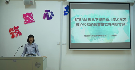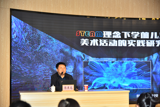 11月7日下午,我校学前教育专业国家级职业教育教师教学创新团队核心成员陈秉龙教授开展了题为《STEAM理念下学前儿童美术课程研究》的讲座。陈秉龙教授深入浅出的讲解了STEAM教育理念融入于美术课程之中的作用和意义,并通过深入探讨幼儿园美术课程的现状,总结出STEAM教育理念在幼儿园美术活动开展过程中的指导策略,为幼儿园美术课程教学质量的提升提供了重要的参考作用。随后,福州市马尾第三实验幼儿园林婉惺园长、福州市台江区滨江幼儿园吴榕芳园长、福州市仓山区教师附属第一幼儿园周媛媛老师分别进行了《自制防蜂服》、《会动的机器人》、《我的小基地》等STEAM课程案例分享。