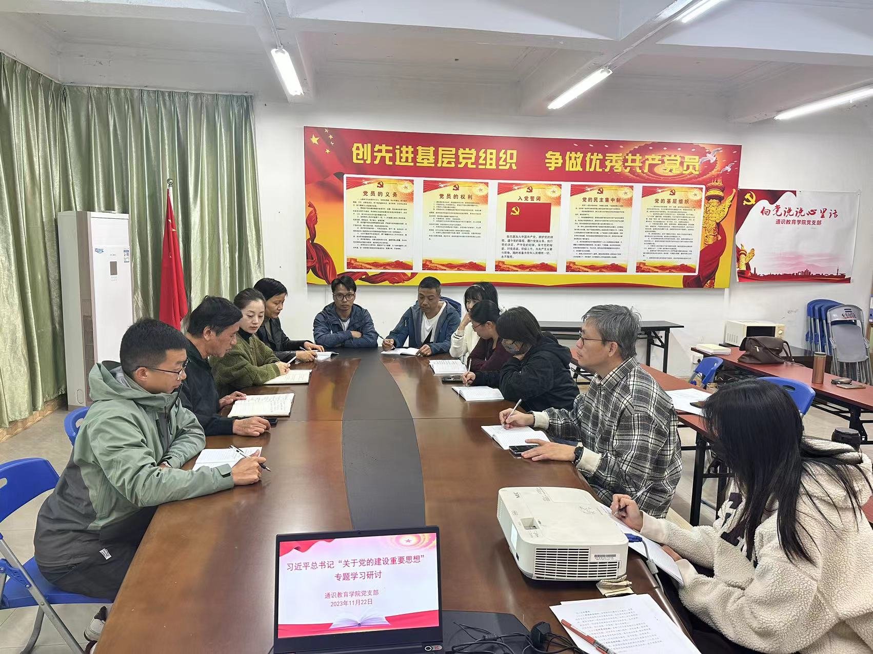 2023年11月22日,通识教育学院党支部在系部楼506会议室开展习近平总书记"关于党的建设重要思想专题学习研讨"的主题党日活动,会议由陈福榕书记主持并讲授,全体党员共同参与。