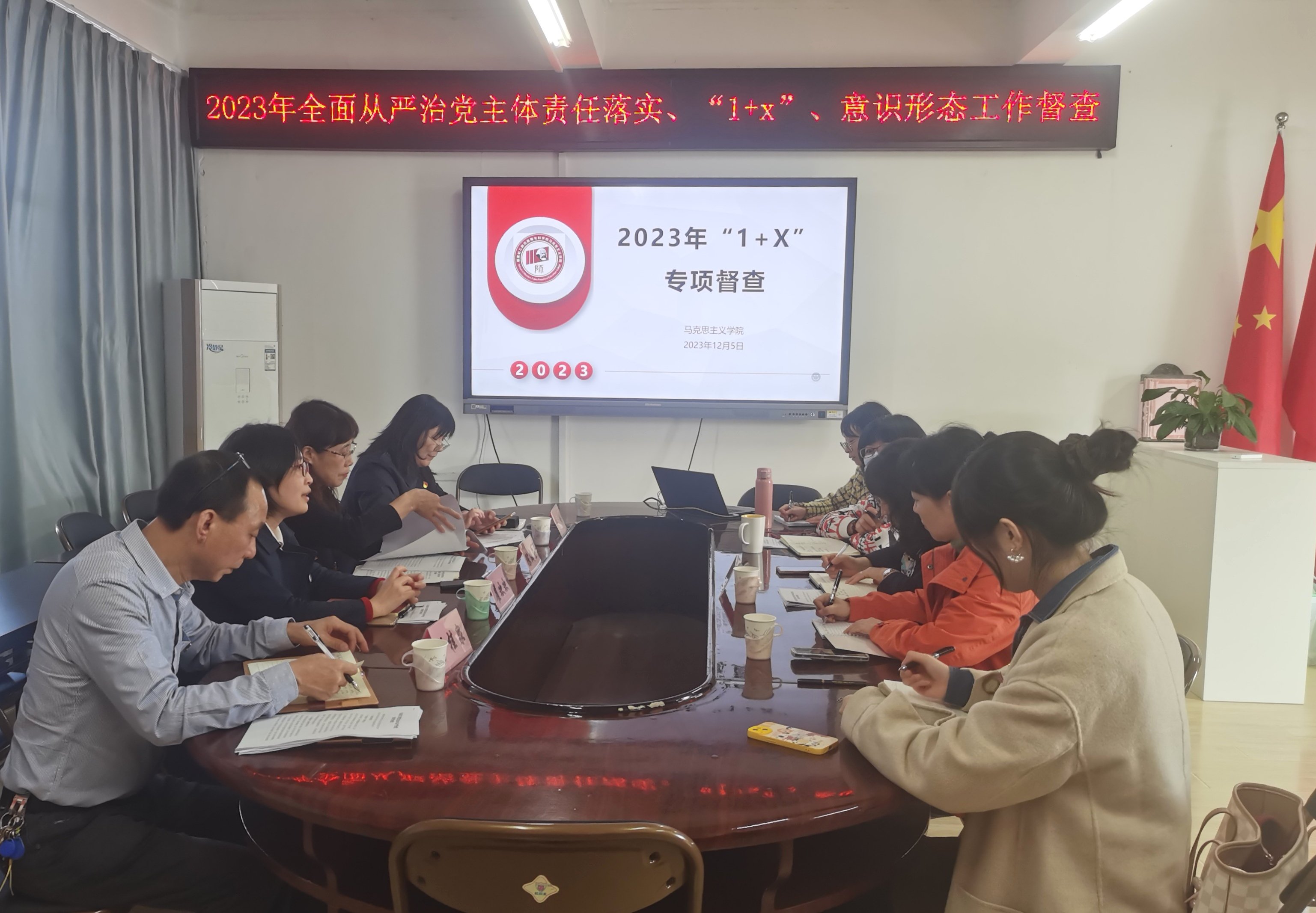 陈风玉副校长与班子领导、教研室主任进行深入访谈,重点了解马克思主义学院党支部落实全面从严治党主体责任情况,以及基层党组织和党员联系师生、发挥作用情况。检查组成员对马克思主义学院党支部落实全面从严治党主体责任、"1+X"专项工作及识形态工作的相关材料进行了现场检查。
