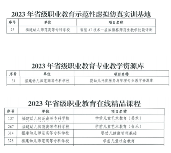 学前教育学院多个项目入选2023年省级职业教育信息化和产教融合重点项目