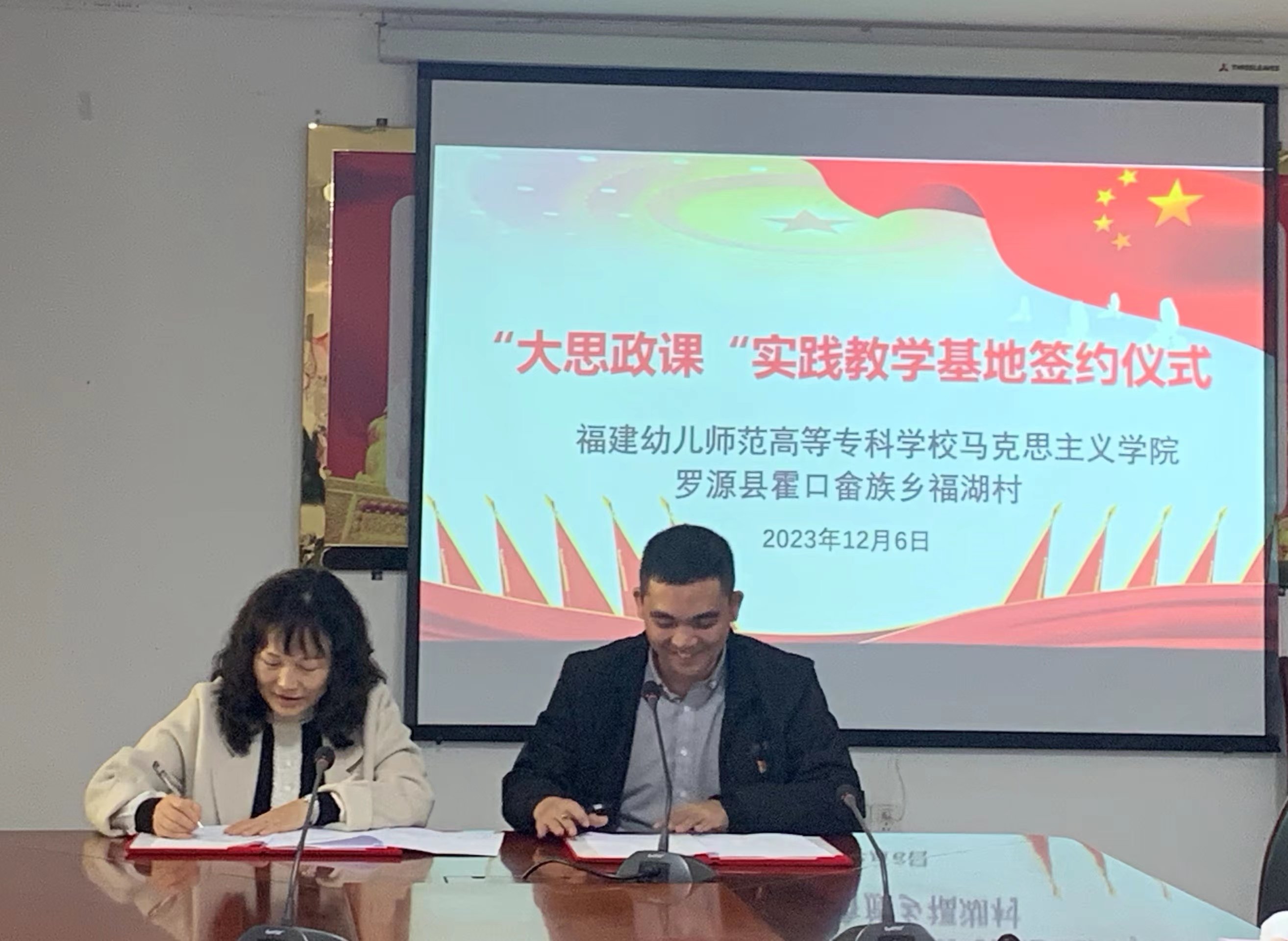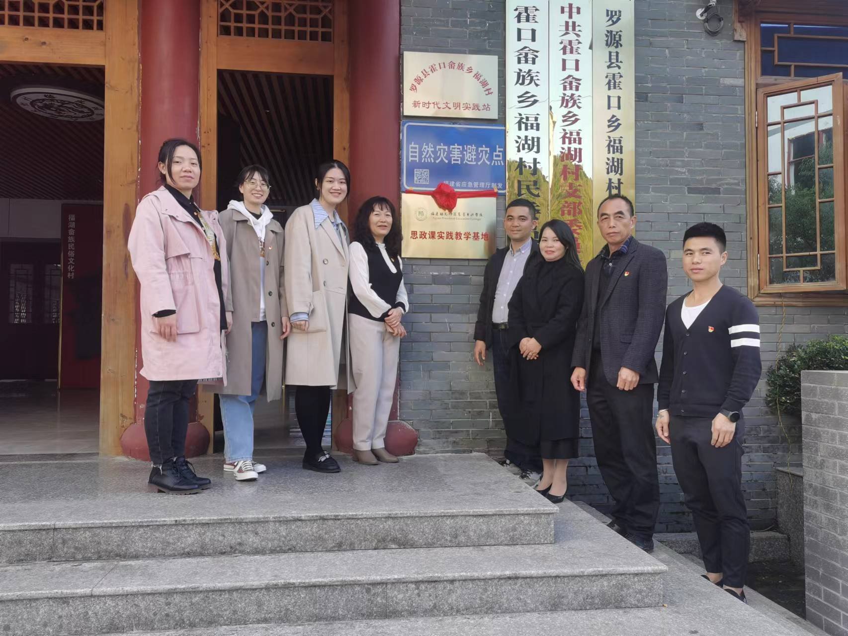 马克思主义学院与罗源县霍口畲族乡福湖村结对合作共建"大思政课"实践教学基地,挂牌、签约仪式于2023年12月6日在福湖村举行。马克思主义学院院长伊文婷、福湖村第一书记林昌华、支书雷文喜及马院部分教师出席本次仪式。