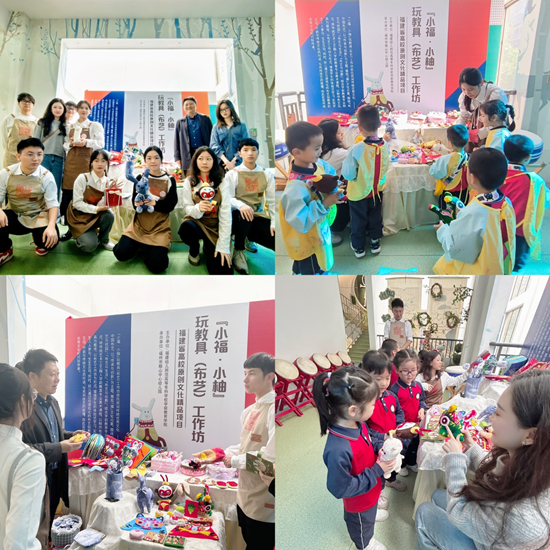 2023年12月15日,由学前教育学院院长吴丽芳教授主持的省级高校原创文化精品项目——"小福·小柚"玩教具(布艺)工作坊应邀参加应由福州市教育研究院主办,鼓山中心幼儿园承办的开放活动"以美育美聚焦游戏 文化传承浸润童心"的展演,学前教育学院美术教研室陈秉龙教授带领青年教师马紫君和彭艺参加了本次活动。