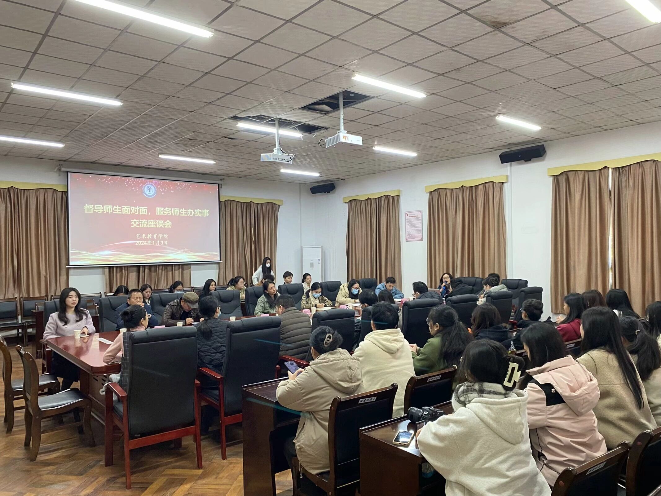2024年1月3日,艺术教育学院在行政楼214会议室开展"师生面对面暨教学督导座谈会",通过零距离倾听与交流,及时准确地了解同学们对学院教学管理的意见和建议。学院院长王萍萍、党总支书记姜琪、副院长颜艳、学生科科长章涛、学院二级督导、各教研室主任、辅导员以及两个校区学生代表参加了本次会议,会议由章涛科长主持。