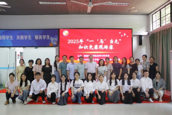 为深入贯彻习近平总书记关于学校思政课建设的重要指示精神,坚持不懈用习近平新时代中国特色社会主义思想铸魂育人,6月11日下午,我校在“一站式”学生社区举行举办2025年大学生学习马克思主义理论“一‘马’当先”知识竞赛决赛。校党委书记鲍仕梅出席并为获奖选手颁奖。马克思主义学院、团委、学工部负责人、马克思主义学院全体教师与学生代表一同观摩了此次比赛。