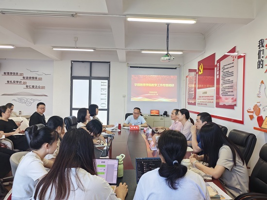 2025年9月17日下午,校党委副书记邹雄伟率教务处副处长叶圣军、肖英娥一行赴学前教育学院开展教学工作专题调研。学前教育学院院长吴丽芳,副院长林萍及各教研室主任、副主任参加会议。