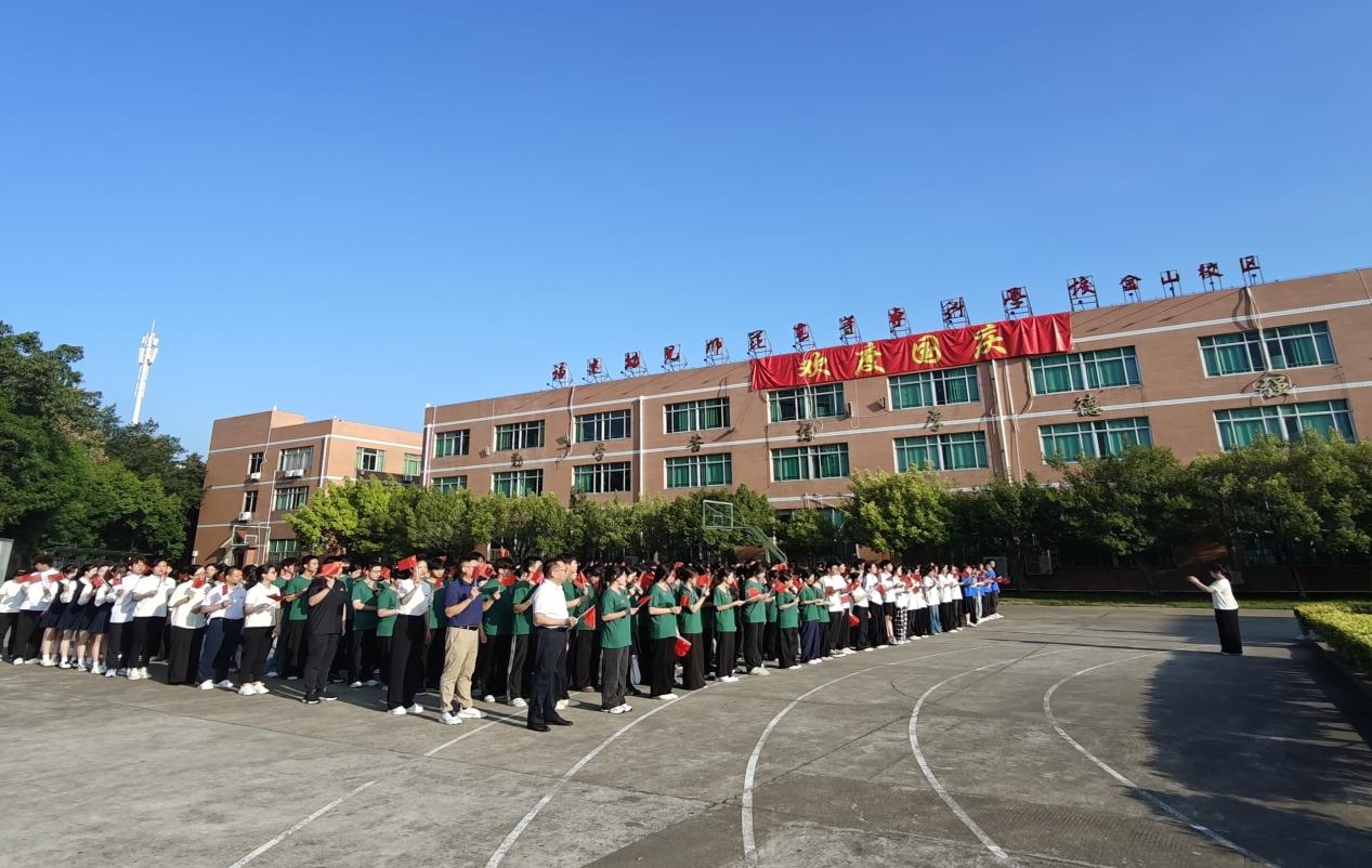 “五星红旗迎风飘扬,胜利歌声多么响亮……” 这首诞生于激情岁月的歌曲,唱出了每一个中国人对祖国的深情告白,更唱响了新时代新征程上团结奋进的磅礴力量。升旗仪式后,全体师生挥动手中的国旗,跟随音乐共同唱响《歌唱祖国》,用歌声传递对祖国的祝福,用旋律凝聚我们前行的力量!