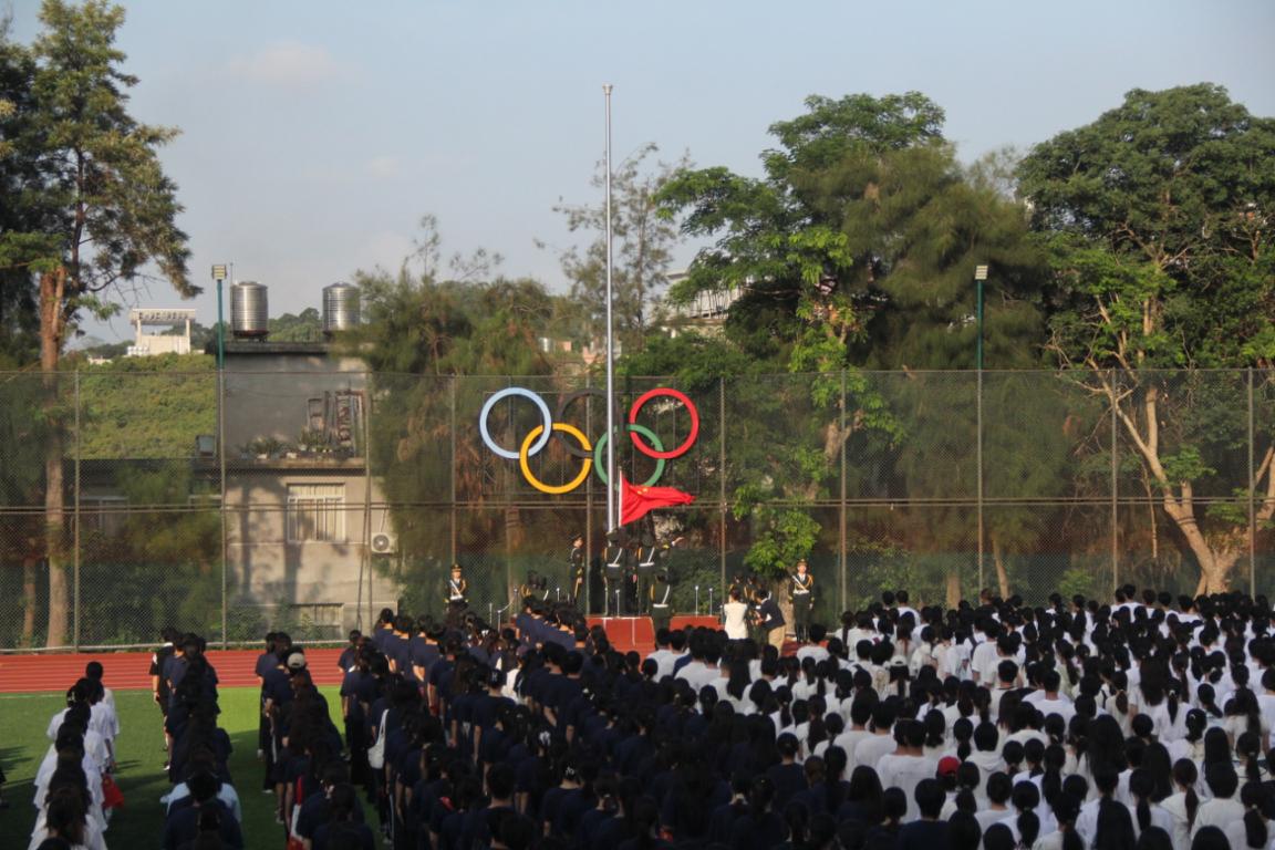 9月30日上午7时25分,英姿飒爽的国旗护卫队队员身着礼宾服,迈着整齐划一的步伐走向升旗台。铿锵的步伐响彻广场,展现出”福幼”学子昂扬向上的精神风貌与对祖国的深切热爱。伴着激昂雄壮的《义勇军进行曲》,国旗冉冉升起,在空中迎风飘扬,全体师生行注目礼,齐唱国歌。