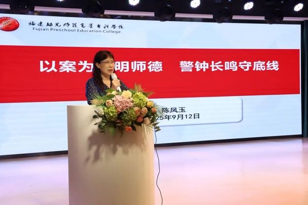 如果说教育是一首诗,那么师德便是它的灵魂,它让教育有了温度,也有了方向。我园特别邀请福建幼高专陈凤玉副校长围绕“以案为鉴明师德,警钟长鸣守底线”主题,为全体教职工带来了一场启智润心的师德讲座。陈凤玉副校长带领大家重温了习近平总书记关于师德师风的重要论述,让全体教职工对“四有好老师”“四个引路人”“四个相统一”等师德标准有了更为清晰、深刻的认识。同时,通过一系列警示案例,引导大家强化师德意识,坚守职业底线,为推动教育事业高质量发展筑牢坚实的思想根基。