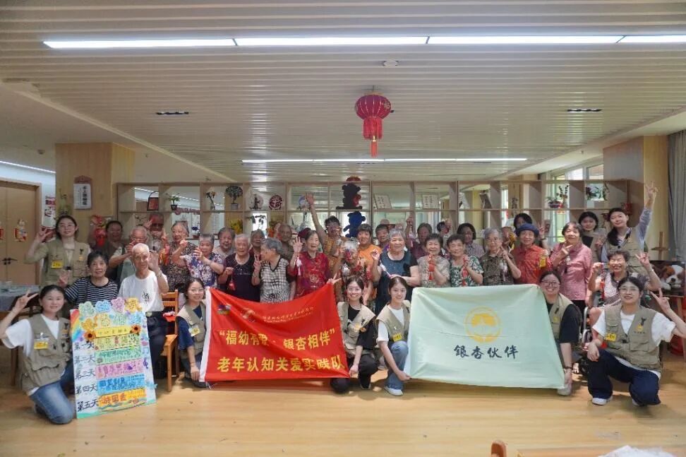 “福幼有爱·银杏相伴”老年认知关爱实践队是一支充满活力的年轻力量。他们扎根智慧健康养老服务与管理专业,汇聚多学科优势,坚持“爱与专业”的初心,在实践中成长,不断学习先进照护理念,致力于成为养老服务创新实践的探索者。实践队追寻领袖足迹,重温领袖的殷殷嘱托,牢记“一定要让老年人有一个幸福的晚年”的初心使命,深入服务基层,走进侨乡海岛,为福州市社会福利院护理楼层、连江县琯头镇粗芦岛美德养老院老人开展认知障碍筛查,服务失能失智护理型老人,以专业化的认知干预手段为特殊老年群体送去温暖,获得了《人民网》《福建老年报》等多家媒体的报道,展现了新时代“青春养老人”的风采。