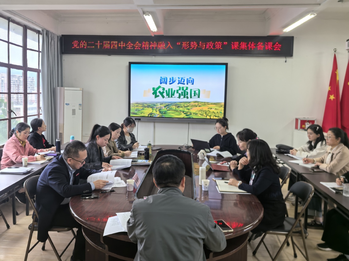 2025年11月13日下午,马克思主义学院在学院会议室开展党的二十届四中全会精神融入“形势与政策”课集体备课会。校党委副书记、校长林伟川,校党委副书记邹雄伟莅临指导。此次集备由利亚欣老师主讲,马克思主义学院院长伊文婷主持,马院全体专任教师参加。