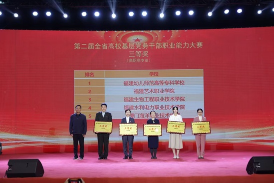 11月27日至28日,第二届全省高校基层党务干部职业能力大赛在福建师范大学举行。大赛设置知识测试、主题党日策划、微党课、谈心谈话4个竞赛环节,我校许冰灵、张育叶、方春兰三位老师组成的团队,在全省40余所高职院校的激烈比拼中发挥出色,荣获团体三等奖(全省高职高专组第六名),并在单项赛中取得突破:“微党课”赛项荣获全省高职高专组第一名,“知识测试”赛项获第六名。