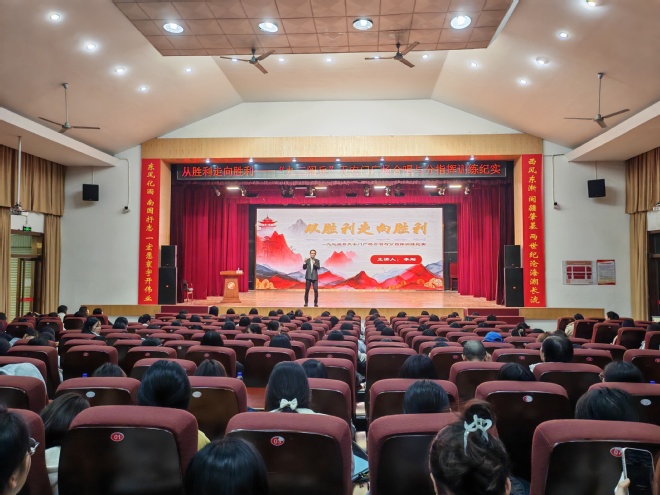 12月9日晚,《从胜利走向胜利——九三阅兵天安门广场合唱与分指挥训练》美育思政课暨“中国共产党人精神谱系”专题宣讲会在我校仓山校区礼堂隆重举行。学校师生代表共500余人参加。