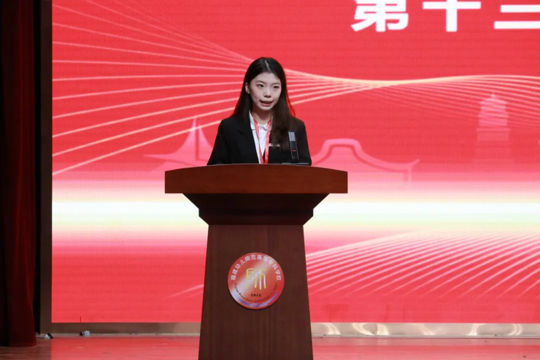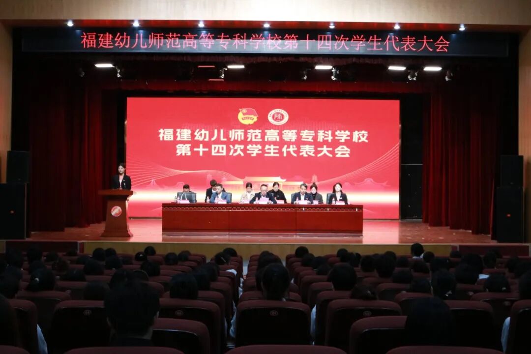 在全国上下深入学习贯彻党的二十届四中全会精神,以中国式现代化全面推进强国建设、民族复兴伟业的重要时刻,在我校喜迎办学110周年华诞的喜庆氛围中,2025年12月20日,福建幼儿师范高等专科学校第十四次学生代表大会在仓山校区礼堂隆重召开。校党委副书记邹雄伟、校团委书记胡华荣、校学工部主持工作副部长章涛、各学院团委书记、兄弟院校学生会代表及140名学生代表齐聚一堂,共赴这场青春盛会。本次大会由第十三届校学生会执行主席傅欢玥主持。