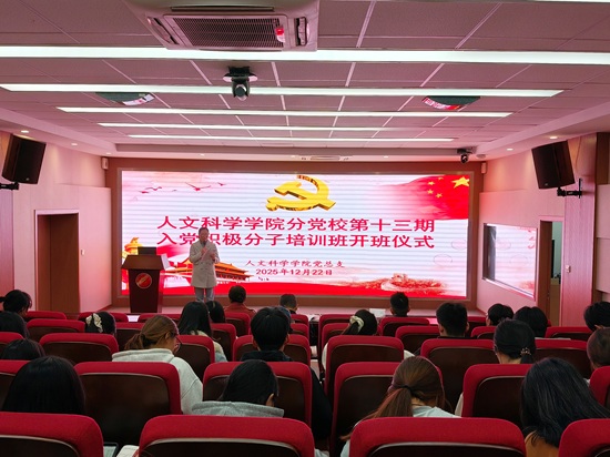 开班仪式结束后,薛景以《在新时代发挥引领作用彰显人文先进青年风采》为题,为本期分党校入党积极分子培训班进行了第一次集体授课。党课围绕“深学细悟习近平新时代中国特色社会主义思想,筑牢信仰之基,把握行动指南”“学习贯彻党的二十届四中全会精神与全国教育大会要求,明确时代方位与青年责任”“严守党的纪律规矩,筑牢思想防线,维护校园和谐稳定”“立足学院专业特色与实践平台,在追求进步中全面发挥先锋模范作用”“弘扬学院光荣传统,持续追求卓越,为学院发展贡献青春力量”等五个方面展开,勉励全体入党积极分子以此次培训为新的起点,更加自觉地用党的创新理论武装头脑,更加严格地以党员标准要求自己,更加主动地在学习、工作、生活中发挥先锋模范作用,将个人理想融入党和人民的事业,在服务国家战略、服务地方发展、服务学院建设的生动实践中,努力成长为有理想、敢担当、能吃苦、肯奋斗的新时代好青年,用无悔的青春为实现中华民族伟大复兴的中国梦贡献智慧和力量!