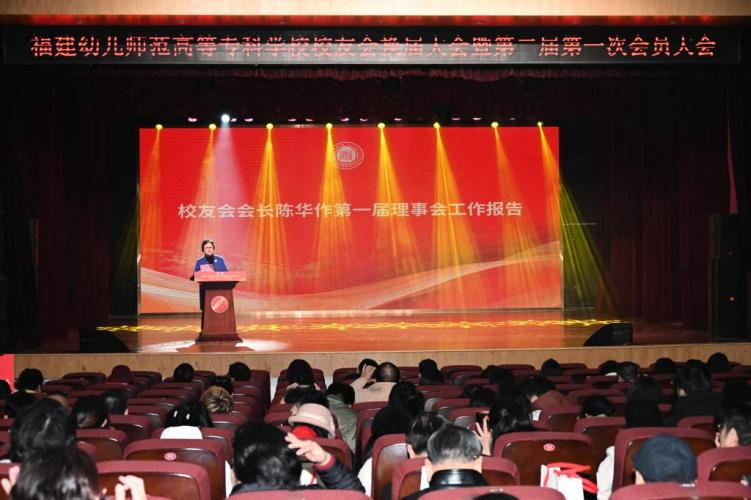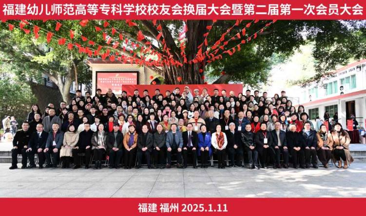2025年1月11日,福建幼儿师范高等专科学校校友会换届大会暨第二届第一次会员大会在福建幼儿师范高等专科学校仓山校区礼堂隆重召开。出席大会的有校党委书记鲍仕梅,校党委副书记、校长林伟川,校领导邹雄伟、谢翠红、谢福仁、陈凤玉,福建幼儿师范高等专科学校的前身学校五七中学、原福建省福州幼儿师范学校、原福建省福州艺术师范学校、原福建科技职业技术学校和福建幼儿师范高等专科学校的校友代表,以及部分在校和离退休教职工共近200人参加了本次大会。大会由福建幼儿师范高等专科学校党委副书记邹雄伟主持。